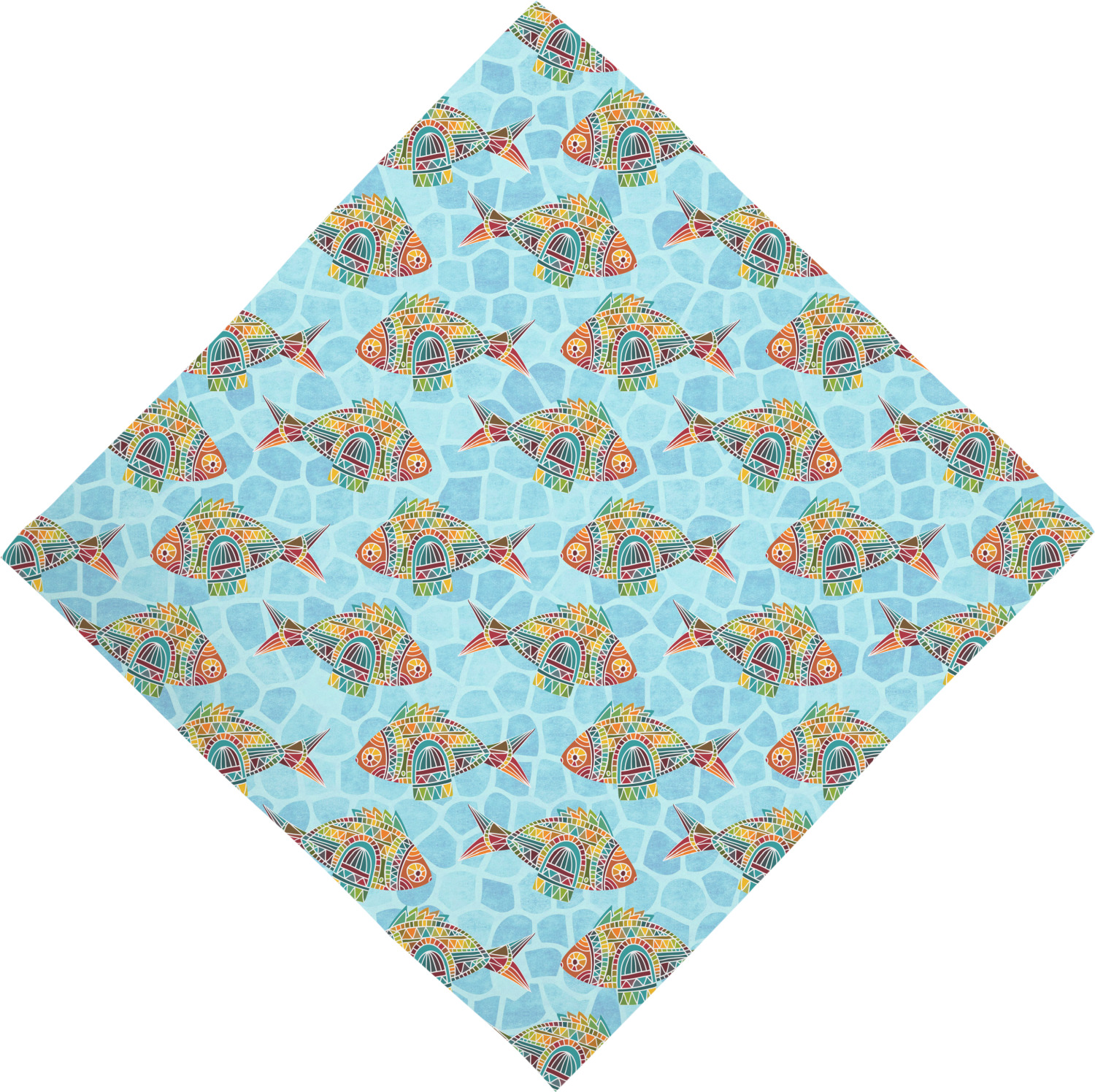 This beautiful pet bandana really is the perfect accessory. It is made from a silky feeling polyester and measures at approximately 23" x 23". Your personalization will be printed on a diagonal, so that you are able to read the personalization when folded into a triangle. This bandana fits best on large dogs, but can be folded smaller if there is no personalized text to fit smaller pets.