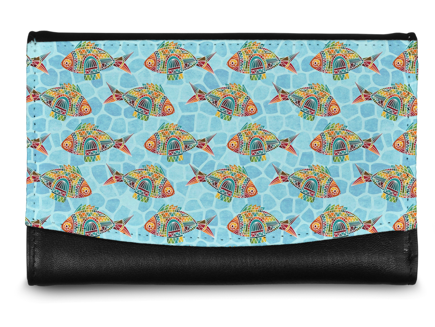 The compact size of this wallet - 5.5in wide, 3.5in tall and 0.75in thick when folded - makes it perfect to hold in hand and small enough to fit in a clutch or a normal size purse. The outside flap is customized with your choice of artwork and closes with a snap closure - with two different snaps to allow it to be adjusted when storing more items - to securely fasten the flap.