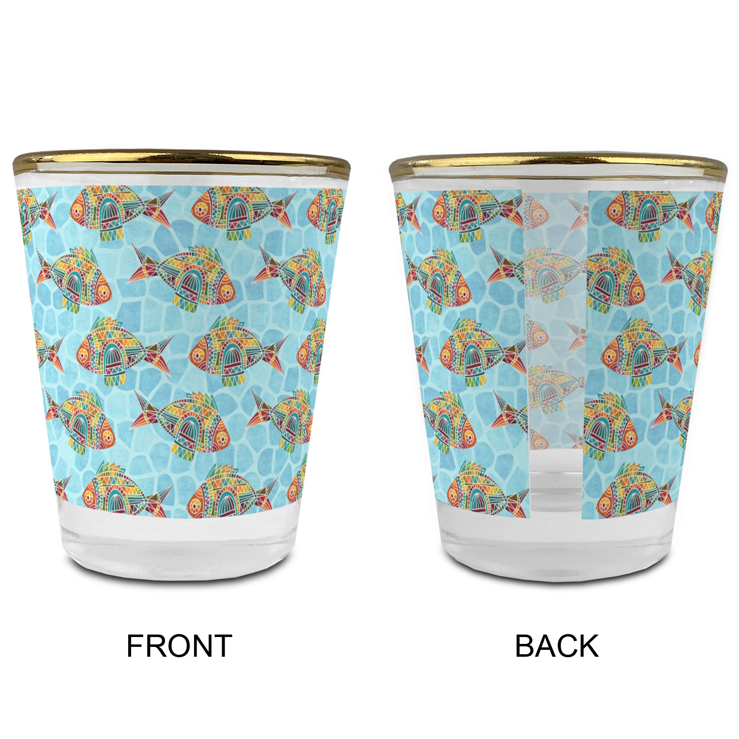 Made with frosted glass, these shot glasses are printed in full color with the design of your choice. They are a standard 1.5oz shot glass and are 2.4" tall. The print is wrapped around the shot glass in a full wrap and boldly displays your customization.