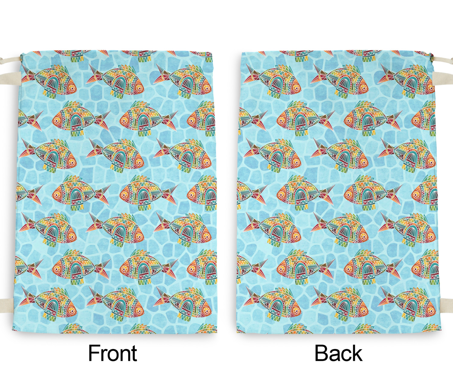 Our laundry bags are handmade in the USA; The fabric is printed using dye sublimation. The fabric is then cut and the grommets are added for the drawstring closure. The laundry bag is then sewn and the drawstring is fed through and knotted to create the cinch closure.