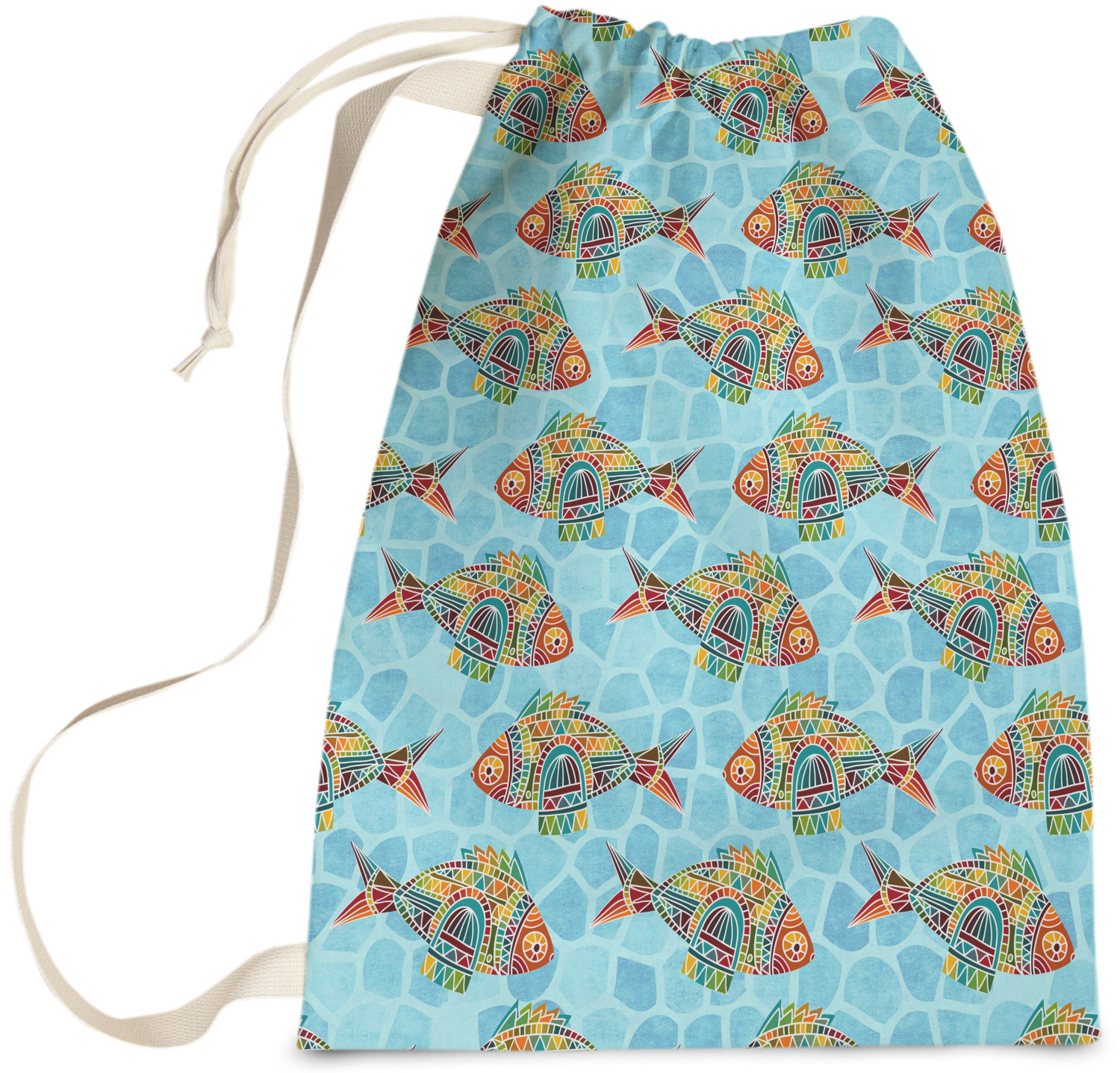 Our laundry bags are handmade in the USA; The fabric is printed using dye sublimation. The fabric is then cut and the grommets are added for the drawstring closure. The laundry bag is then sewn and the drawstring is fed through and knotted to create the cinch closure.