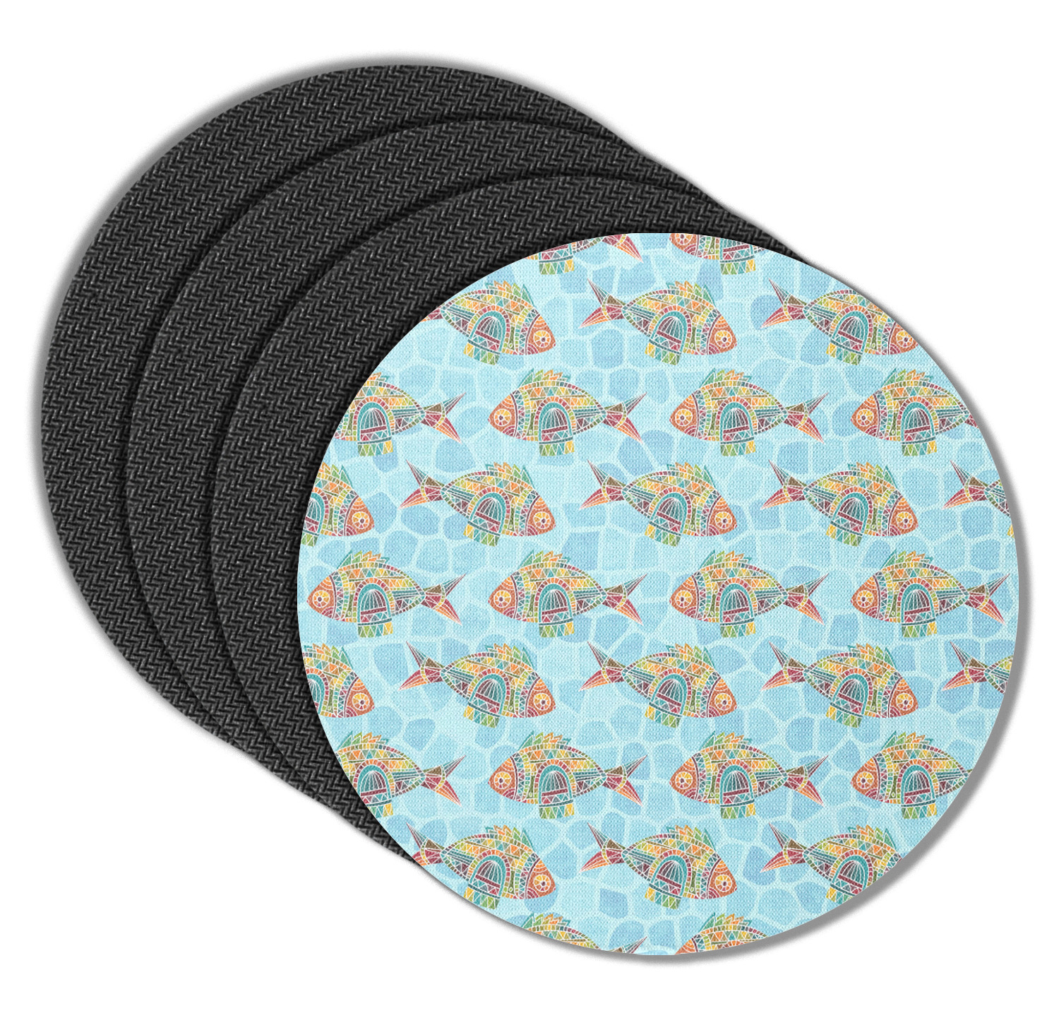 These drink coasters have a smooth, polyester top and a textured, rubber backing on its bottom. The non-slip rubber backing underneath works to keep any spills at bay. At 4 by 4 by 0.25 inches thick, these custom coasters are a suitable size for most drinkware. Your personalization is displayed atop the face of the cup coaster. We sell these rubber coasters in two different shapes: square and round. You can buy each shape as singulars or as a set of 4.