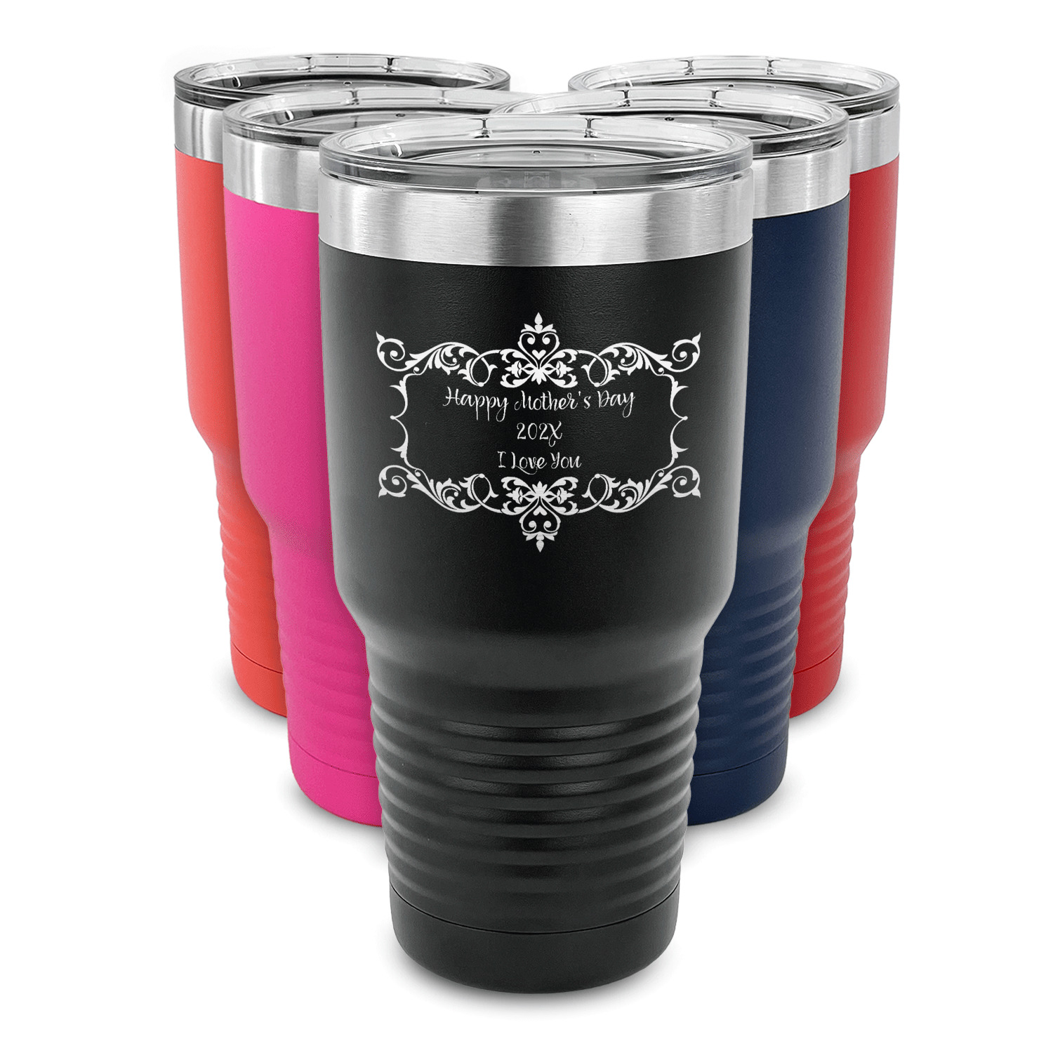With our personalized 30 oz double wall stainless steel tumblers, you'll never have to settle for a plain, boring tumbler again! These tumblers will be a wonderful addition to your drinkware collection and will make those long commutes much brighter. Personalize one for yourself, or give these personalized tumblers as a gift to relatives, friends, or coworkers!