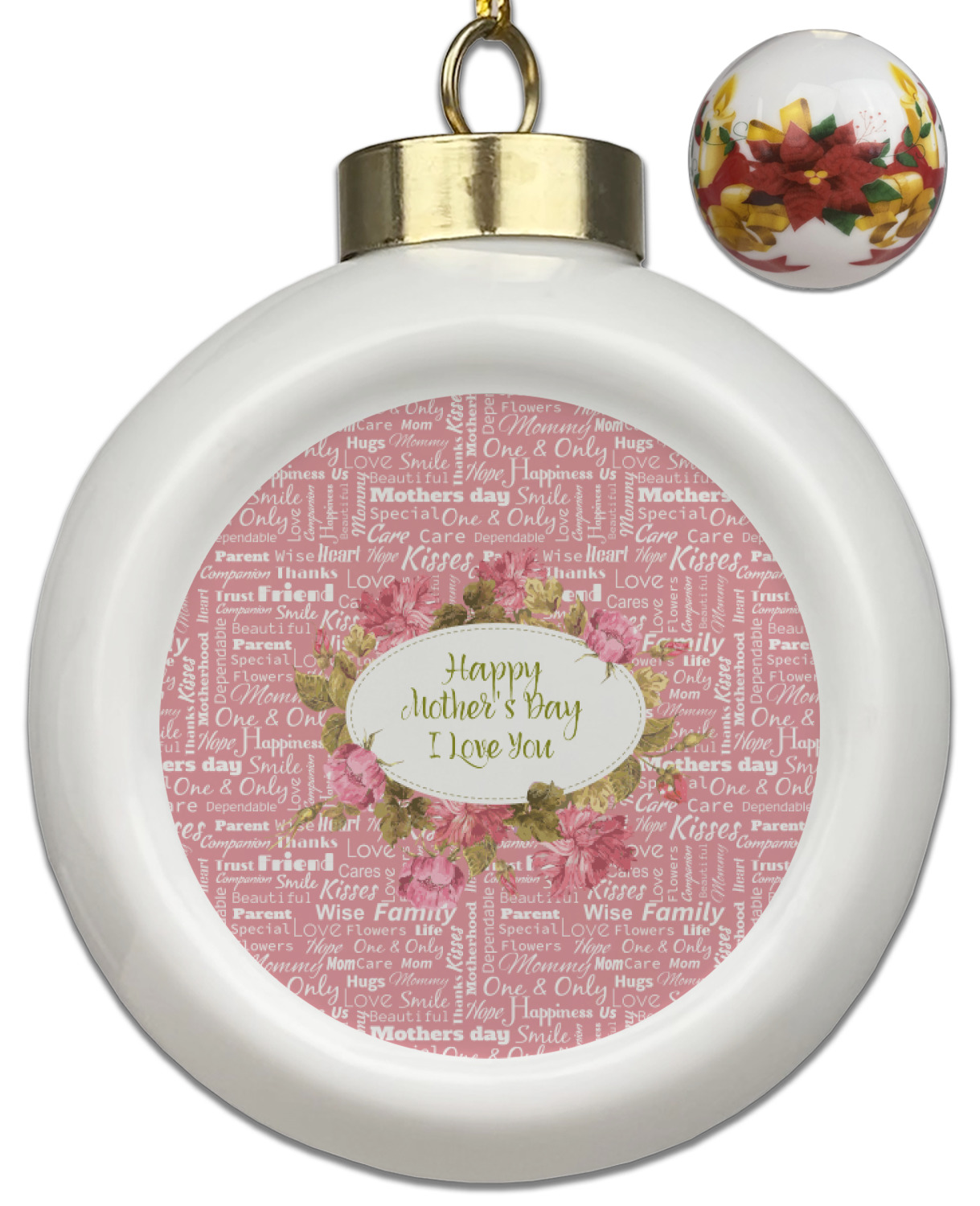 Our Christmas ornaments are a unique ceramic ball shape with a twist as it has a flat face to display your custom design! Select from one of our two design types - Christmas Tree or Poinsettia Garland - to adorn the curved back of your personal design. Each ornament measures 3H x 2.5W x 2D accompanied with a gold string accent for finishing touches to hang on your beautiful Christmas tree!