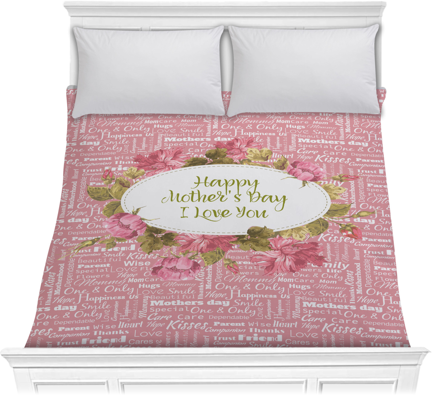 We chose "Happy Mother's Day. I love you" for our sentiment and personalization. Choose your own sentiment and personalize this in any way that suits you. Change the text, the font, the color. Best of all - you get to see all your change right there on the spot in our rendering system.