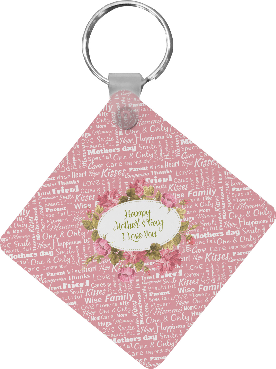 Our personalized keychains attach to the included metal, split key ring with a plastic, removable snap. Since a metal ring is included with your purchase, you have the liberty to keep your keys together on the ring, with or without your unique keychain. We offer this keychain in three different shapes: circle, heart, or diamond. We print your personalized design(s) on both sides of the key chain, and the surface has a glossy, reflective finish that only emphasizes your design. Each keychain is approximately 2.25 by 2.25 inches.