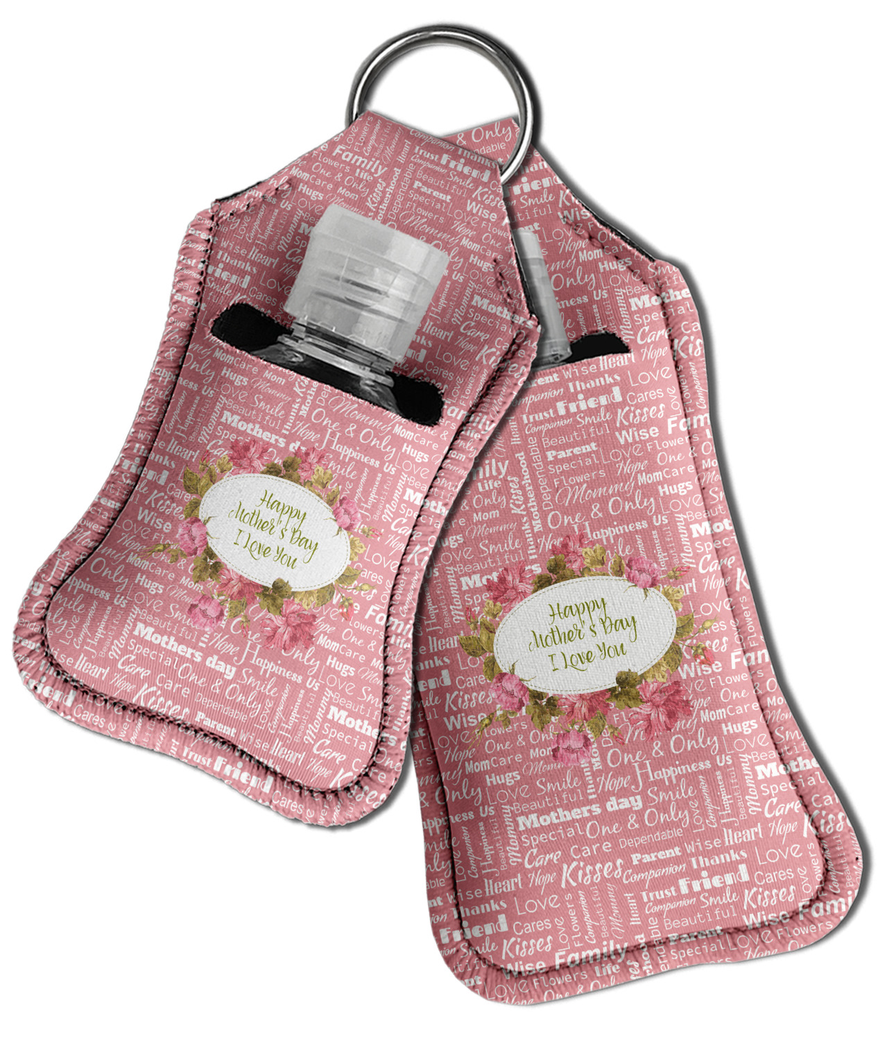 Each hand sanitizer holder comes with its own empty travel-sized, refillable hand sanitizer sure to fit snug in your customized sanitizer case! Our hand sanitizer cases are a durable, yet soft neoprene material sure to last any daily activities or travel agenda. Customize and personalize a hand sanitizer bottle holder with one of our two sizes - small (4.25" x 2.25") or large (5.5" x 2.5"). Each travel sanitizer holder comes with a keyring for attachment on bags, keys, or more!