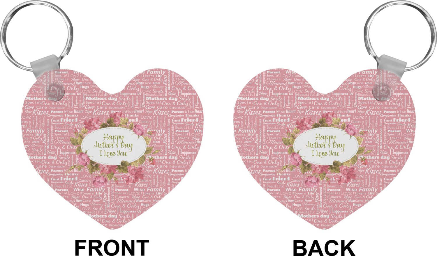 Our personalized keychains attach to the included metal, split key ring with a plastic, removable snap. Since a metal ring is included with your purchase, you have the liberty to keep your keys together on the ring, with or without your unique keychain. We offer this keychain in three different shapes: circle, heart, or diamond. We print your personalized design(s) on both sides of the key chain, and the surface has a glossy, reflective finish that only emphasizes your design. Each keychain is approximately 2.25 by 2.25 inches.
