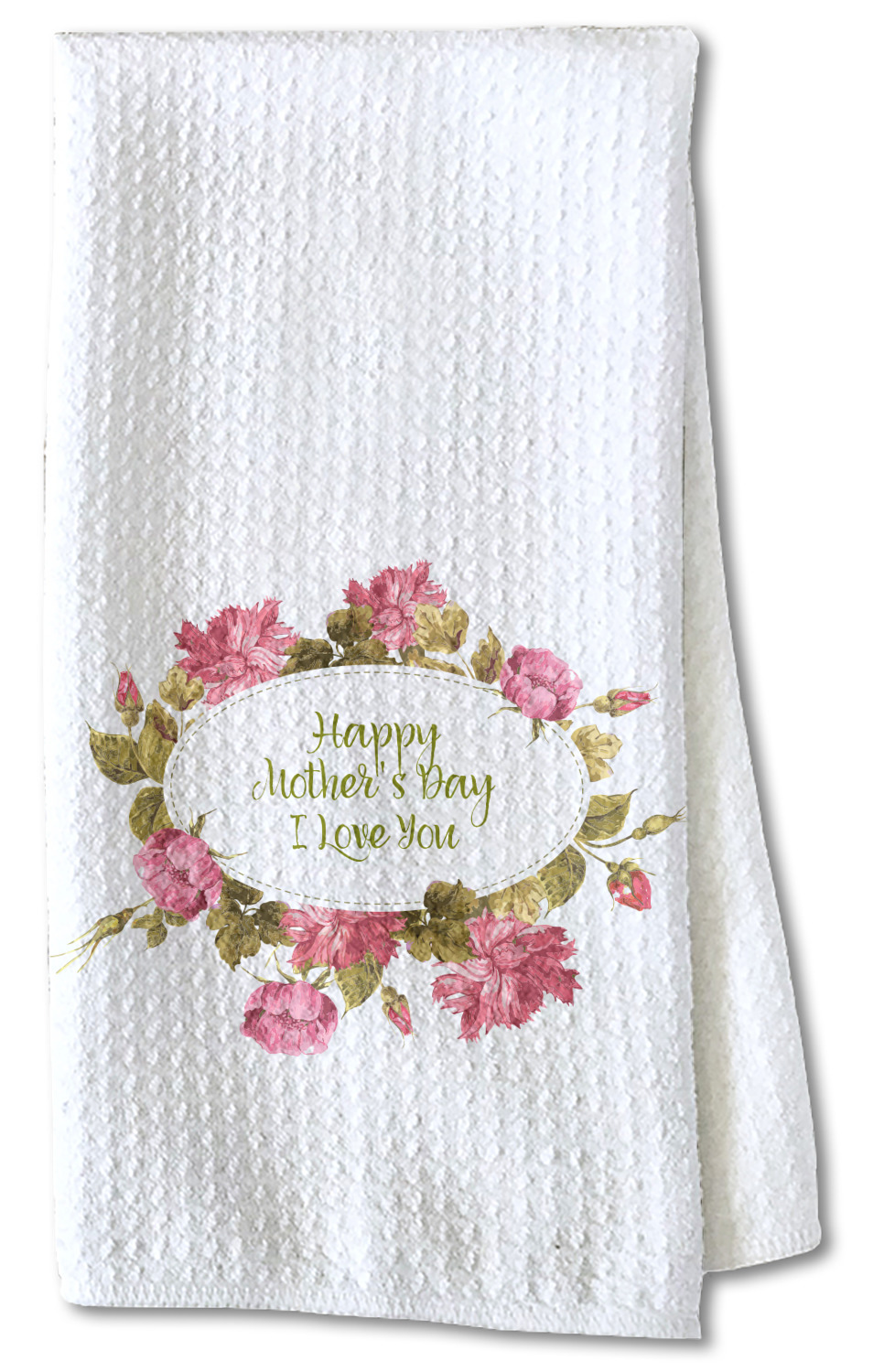 Each waffle weave kitchen towel is approximately 16 x 24 inches with your design printed on one side and the back is white.