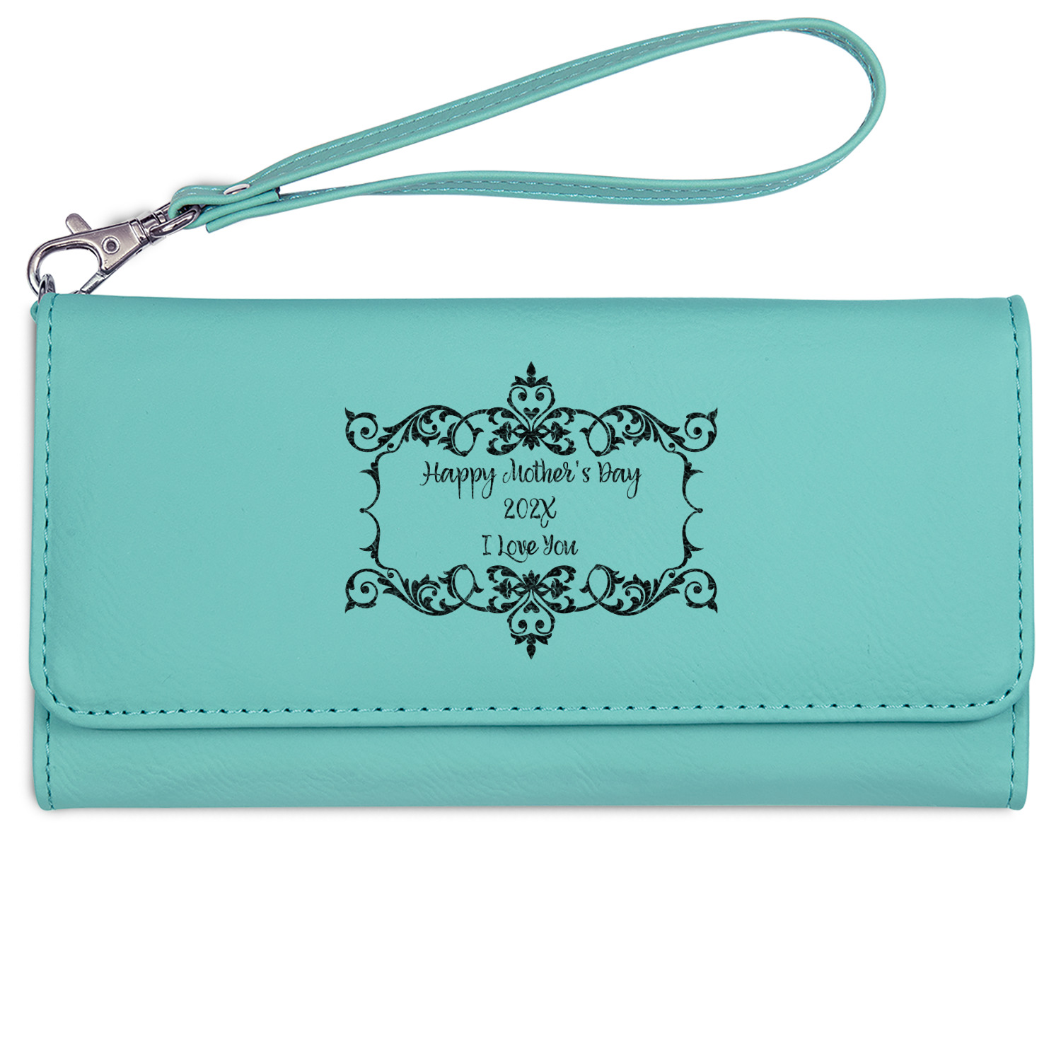 These personalized ladies leather wallets are available in 2 colors - rawhide / cognac and teal.