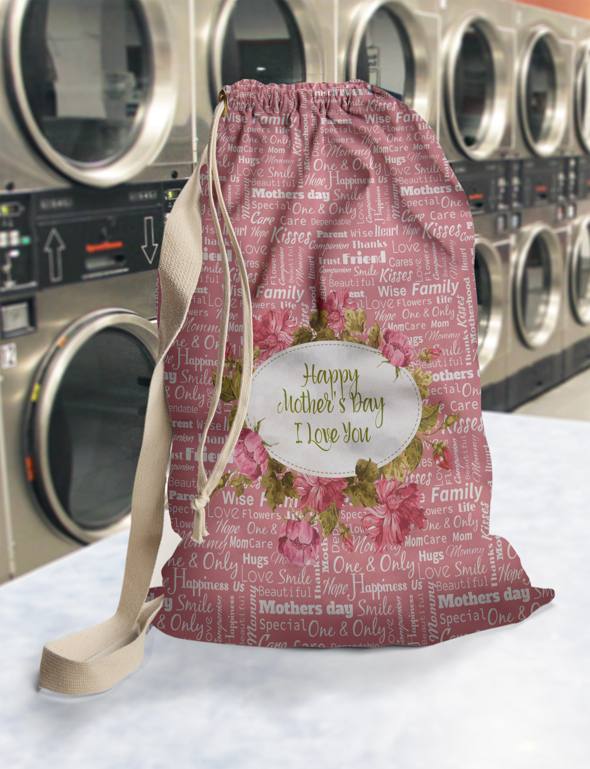 Carry your laundry in style with these customized laundry bags. Available in two sizes, featuring a natural colored woven strap and a cinch cord, these bags hold a lot of clothes or anything else you want to fit in them.