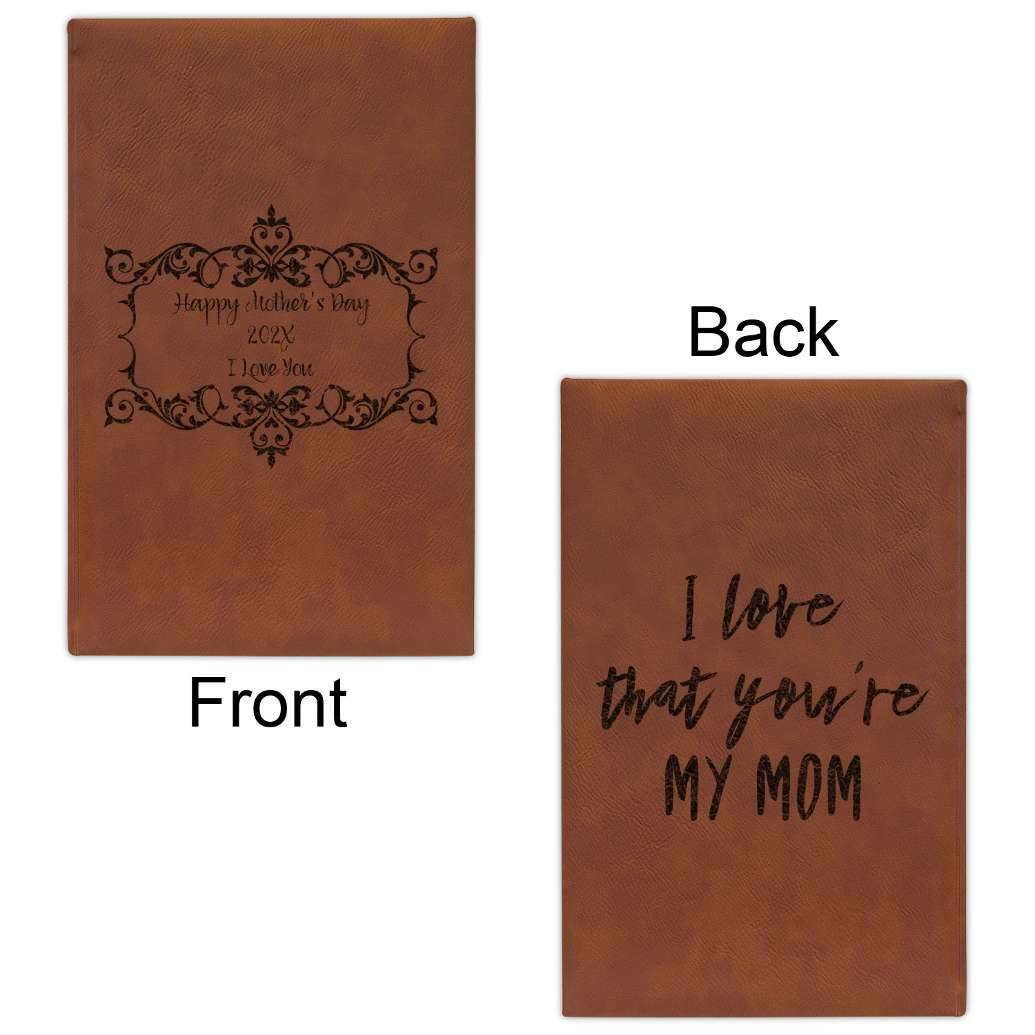 The faux leather covers are a rich cognac / rawhide color and can be customized with your design. From a simple name or monogram or a logo to a detailed mandala - the choice for customization & personalization is truly yours. Customize one of our designs or upload your own.