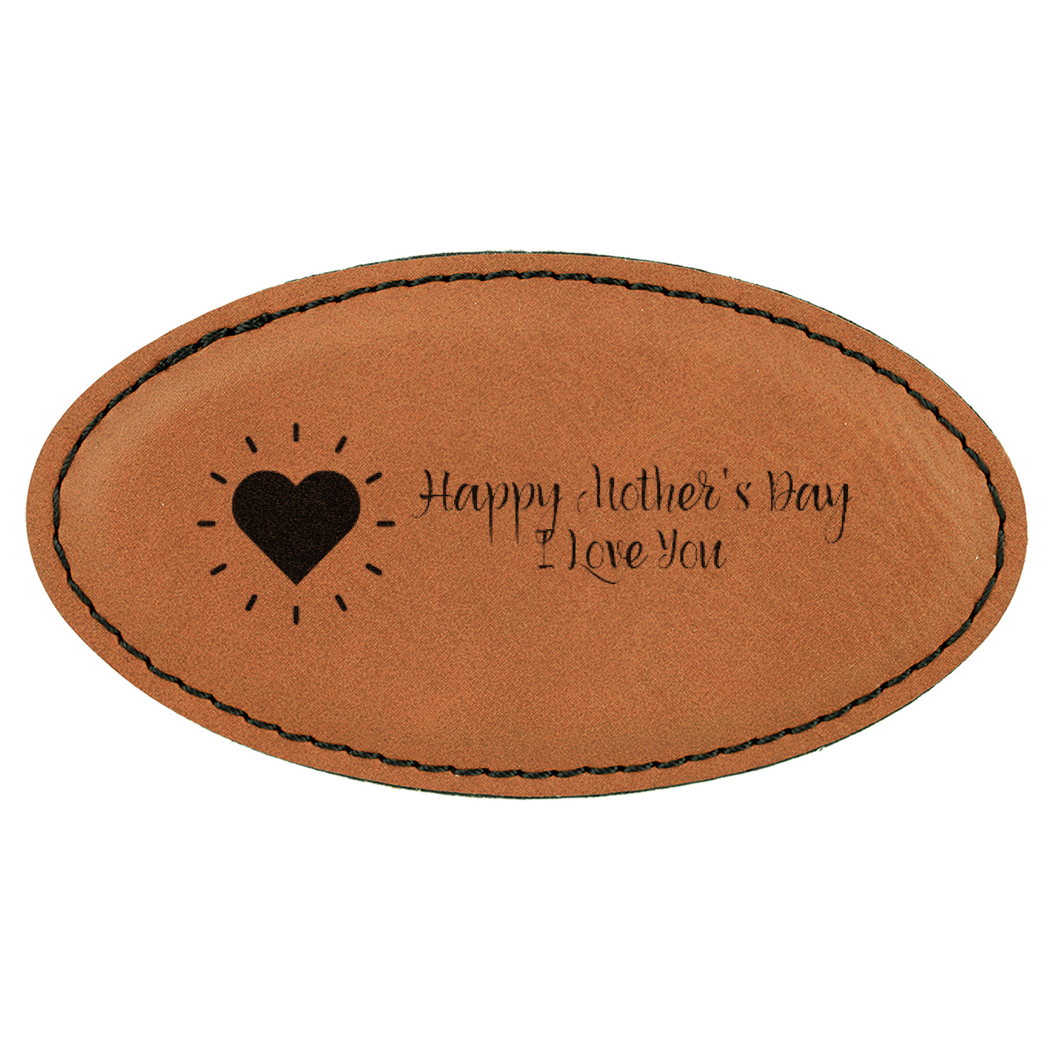 Made from a cognac-brown leatherette into an oval shape, these custom name badges measure at around 3.25" x 1.75". To add the suave appearance of this custom badge, a fine black stitching lines the edges or the badge itself. Your customized design is laser-engraved onto the surface of the leatherette. Accompanying your purchase is a removable magnet strip that can be used to secure the engraved name tag to any shirt, dress, or jacket.
