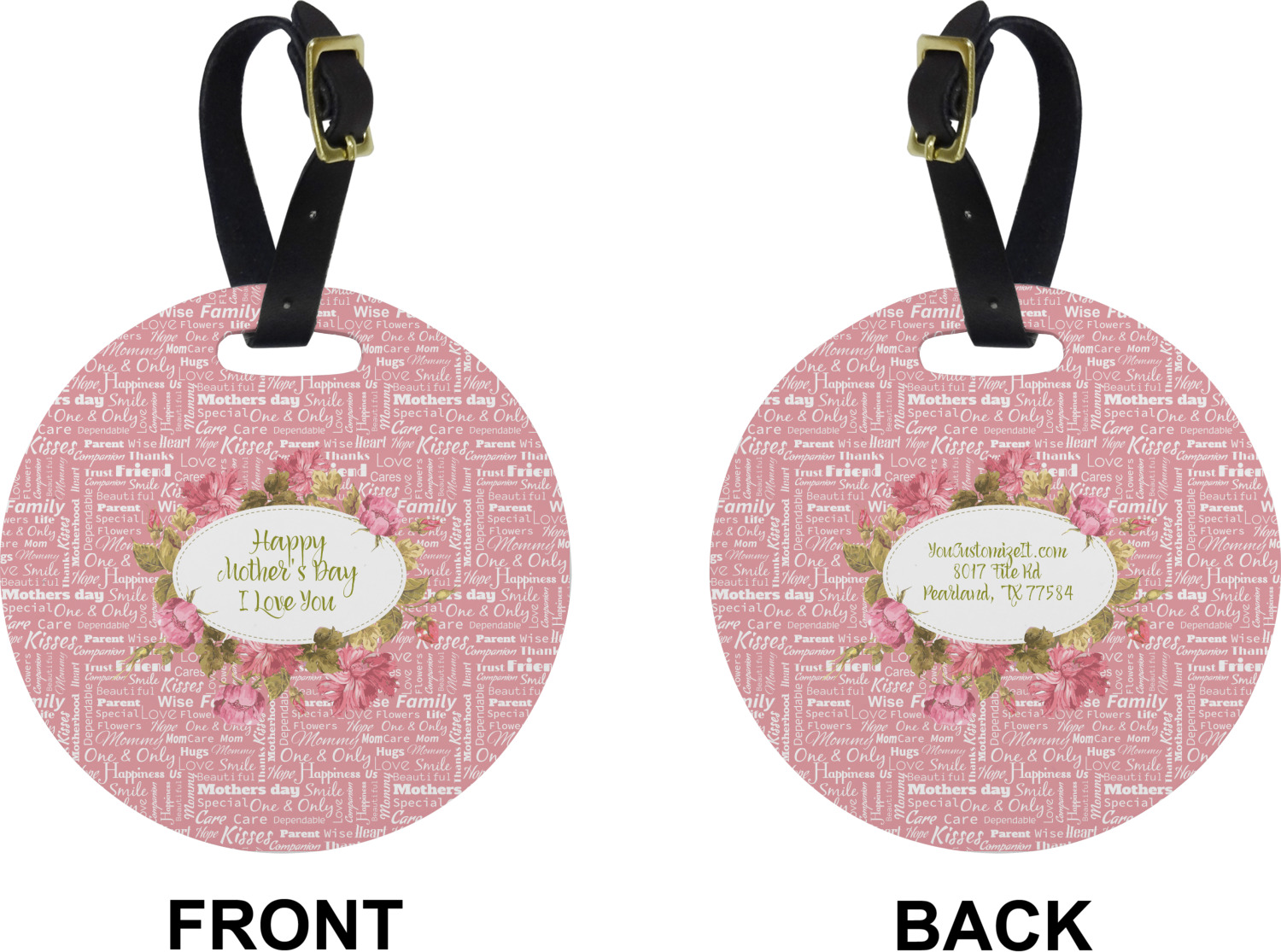 These cute luggage tags are made of a fiber-reinforced, UV-resistant plastic, making them waterproof and durable enough for both everyday use and the rugged adventures of any traveler! A leather strap with holes and a buckle is included with your purchase and can be used to attach your custom luggage tag to any suitcase, backpack, or duffel bag. You can design these travel tags as you wish; your customization will be displayed across the front, while the back will show as little or as much personal information as you want.