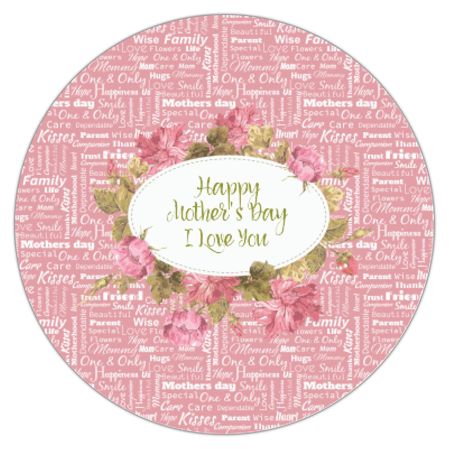 Mother's Day is a very special day and this beautiful and elegant design celebrates all the mothers out there. It has a stunning pink Mom / Mother Word Cloud background, with an incredibly gorgeous floral label. It is feminine, soft and strong just like our mothers.