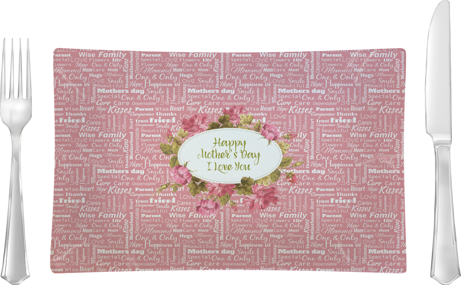 We chose "Happy Mother's Day. I love you" for our sentiment and personalization. Choose your own sentiment and personalize this in any way that suits you. Change the text, the font, the color. Best of all - you get to see all your change right there on the spot in our rendering system.