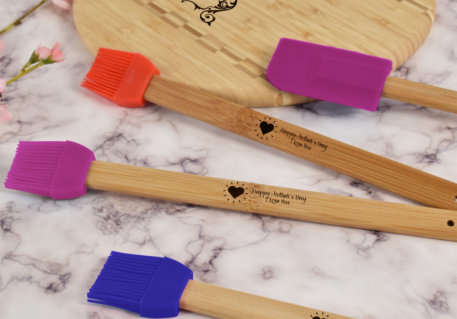 Available in 3 colors to match your kitchen décor - blue, purple and red - you are sure to find an option to perfectly fit into your kitchen tool selection. Choose your color then choose what you would like engraved onto the handle of your basting brush and we will laser engrave it for you to ensure it won't leave your kitchen space!