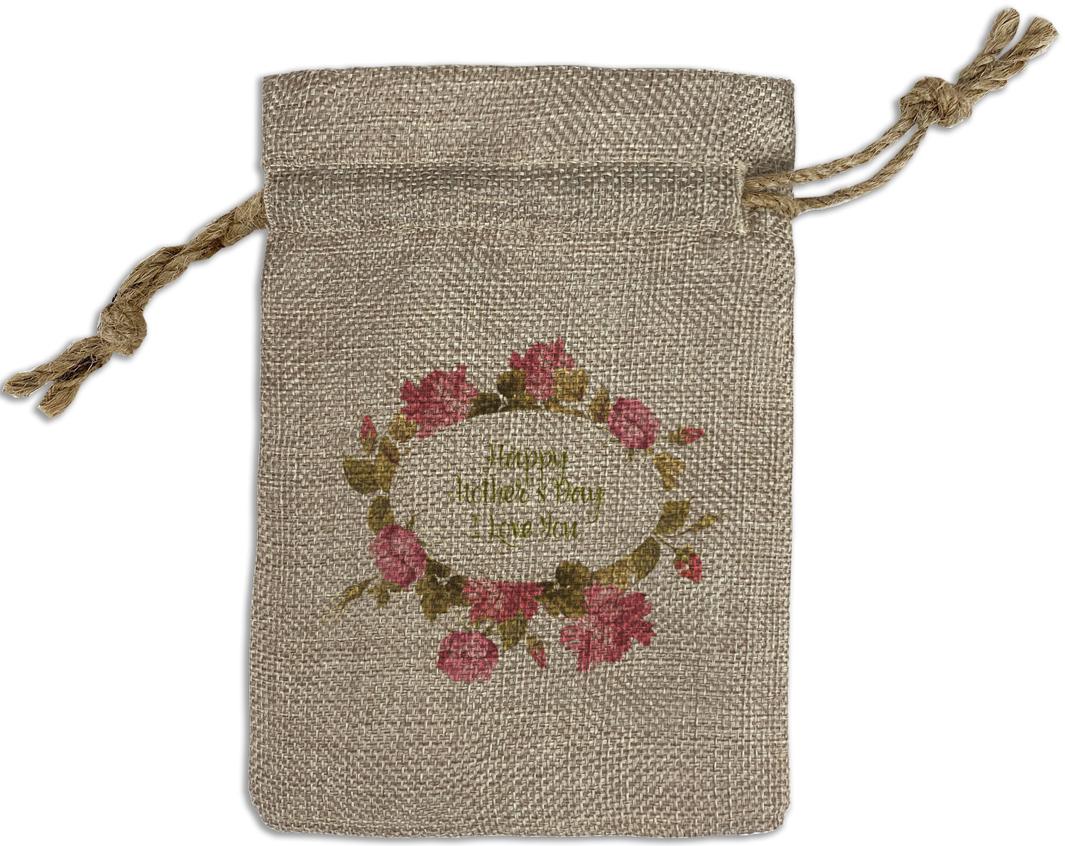 We sell our Burlap Gift Bags in 3 variant sized bags. Made with burlap polyester, each personalized bag can be secured with a twine drawstring pull. Your custom design is available to print on one side or both sides - completely up to you! The sizes of the bags measure approximately 4.5" x 6.5" for the smallest size, 6.5" x 8.0" for the medium size, and 6.5" x 13.5" for the large-sized bag.