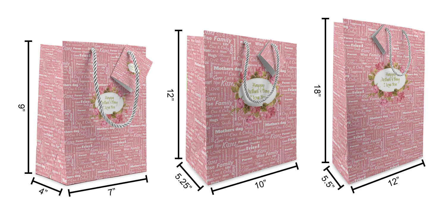 These custom gift bags come in your choice of 3 sizes. Their dimensions are below: