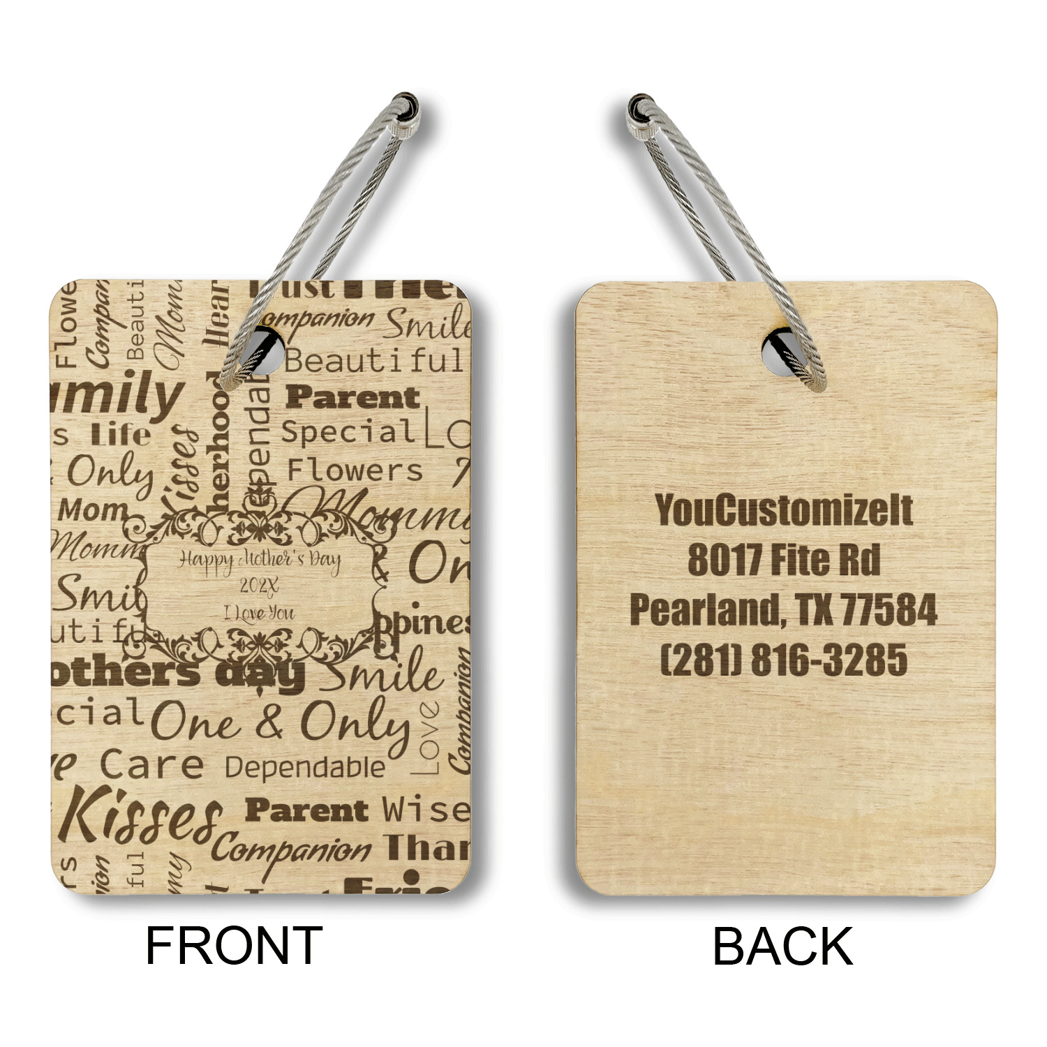 Made from a premium hardwood, these luggage tags are laser engraved and cut just for you. The front contains your design of choice and the back has your contact information to ensure your luggage gets back to you if ever lost.