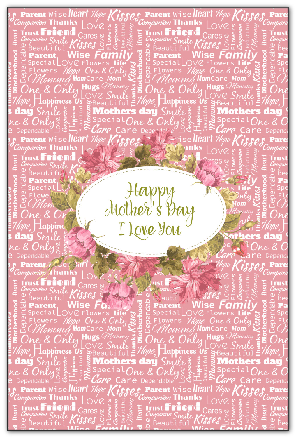 Mother's Day is a very special day and this beautiful and elegant design celebrates all the mothers out there. It has a stunning pink Mom / Mother Word Cloud background, with an incredibly gorgeous floral label. It is feminine, soft and strong just like our mothers.