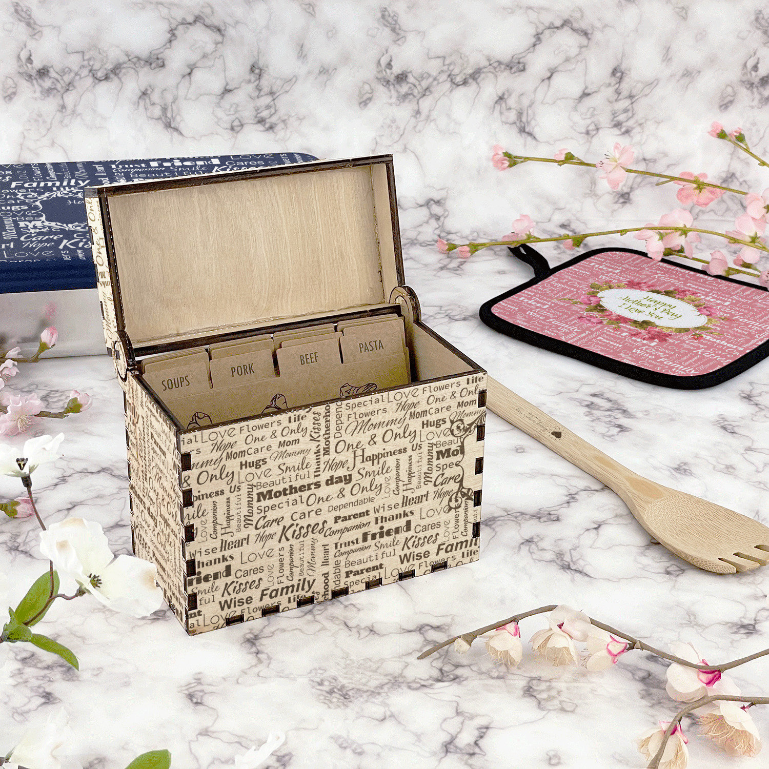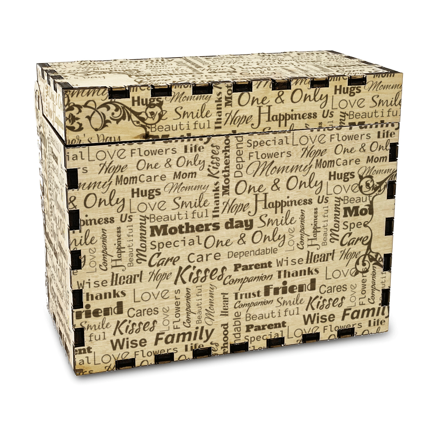 Using our design library you can design your recipe box to be personalized just for you. We will then laser engrave it and assemble it and have it ready for you to insert your recipe cards when you recieve it.