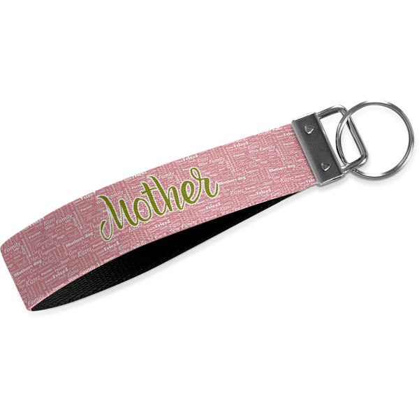 These key fob keychains are made from a polyester weave, right here in the USA. They feature a silver, metal clasp, attached to a round keyring. The piece gives the personalized wristlet a beautiful, finished look. Your customized design is printed on the outside of the keychain strap. We carry these wristlets in two sizes: small, which is 5 inches in width, and large, which is 5.5 inches in width.