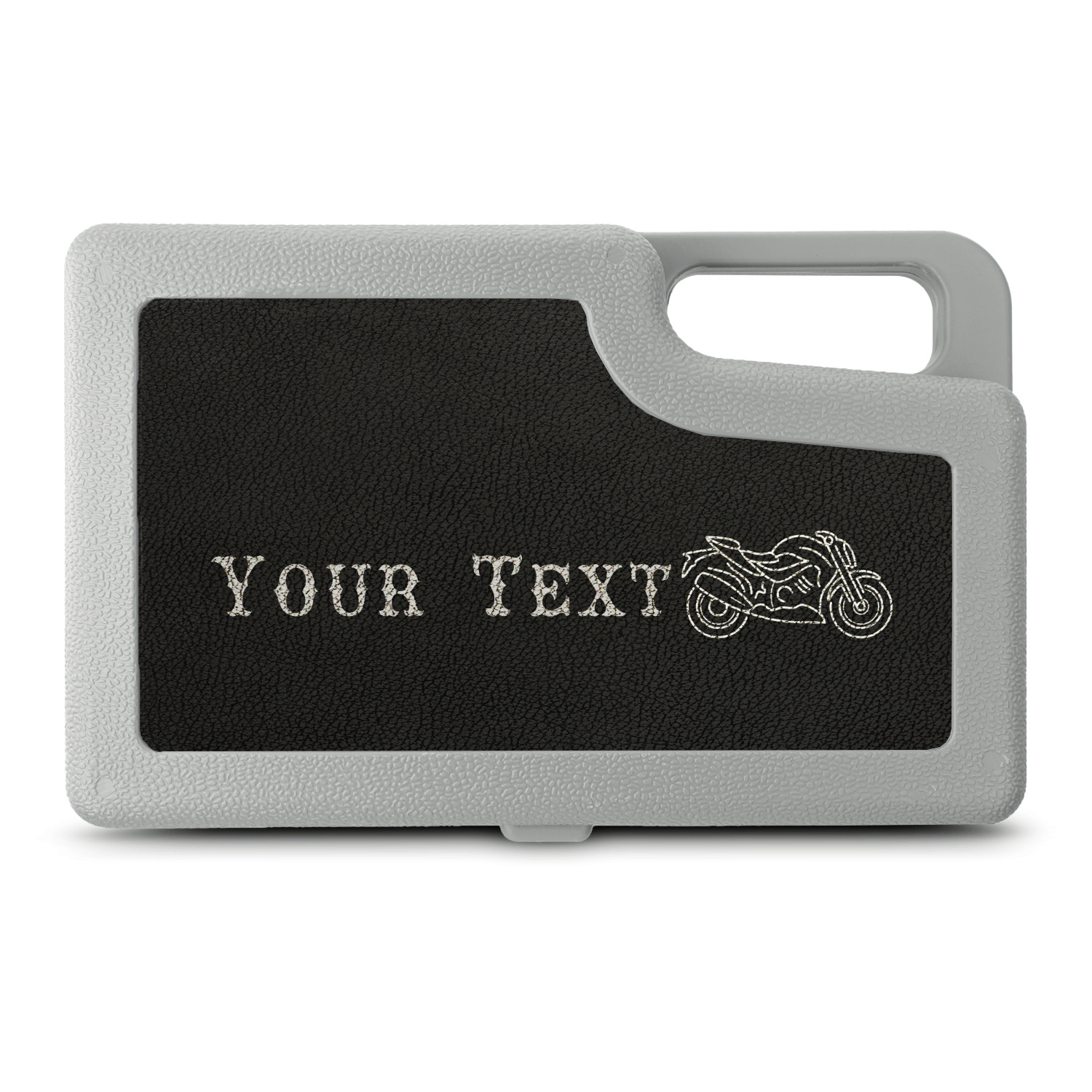 These make for a perfect gift for a new driver or even a gift to give as a congratulatory gift for someone getting a new car. Customize using our design studio and we will laser engrave your design and apply the leather insert to the tool kit case for you.