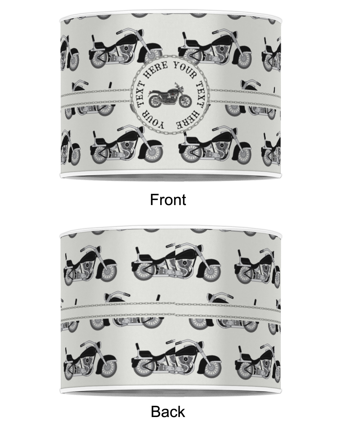 Our personalized drum lamp shades are available in 2 different materials: Poly-film or fabric. Poly-film lamp shades come with the option of white or black border trims to best match your customized design. Fabric lamp shades are finished with a rolled edge for a clean modern look.