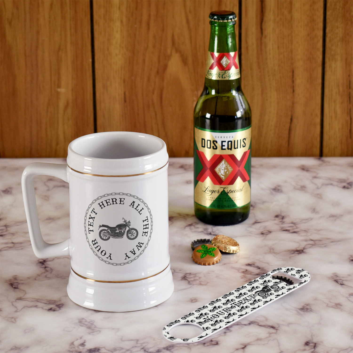 Your favorite beer will taste even better when you drink it from your customized beer stein! These beautifully crafted ceramic beer steins also make great personalized gifts, especially for beer connoisseurs. They also make great gifts for birthdays, holidays, bachelor parties, anniversaries, father's day, or you can just purchase one for yourself!