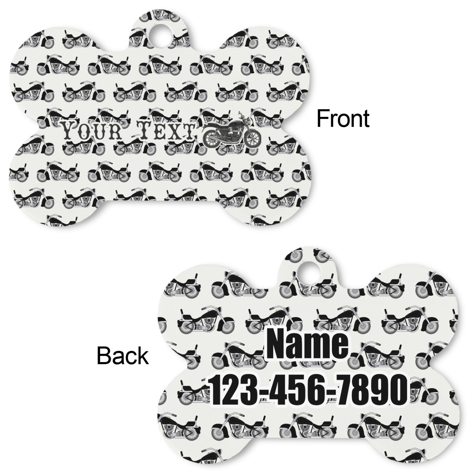 Shaped like a bone and made from aluminum, these tags are available in 2 different sizes.