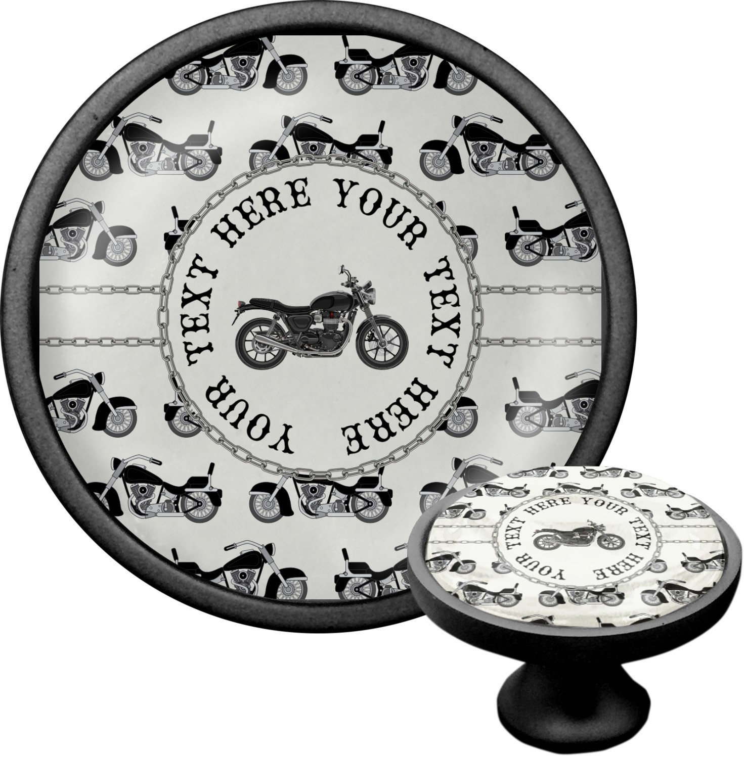 We sell these cabinet pulls in two different colors to better match your room's color scheme. We offer an oil-rubbed bronze base that is black in color, and a satin nickel option, which has a silver color. Your design is displayed across a high gloss vinyl insert that is placed on top of these cabinet handles. We then place a 1 inch thick glass cabochon atop the design, which seals the cabinet knob and makes the colors of your customization stand out. These custom cabinet knobs are approximately 1.3 inches in diameter. Your purchase includes a 1 inch screw that can be used to mount the knob to any cabinet in your home.