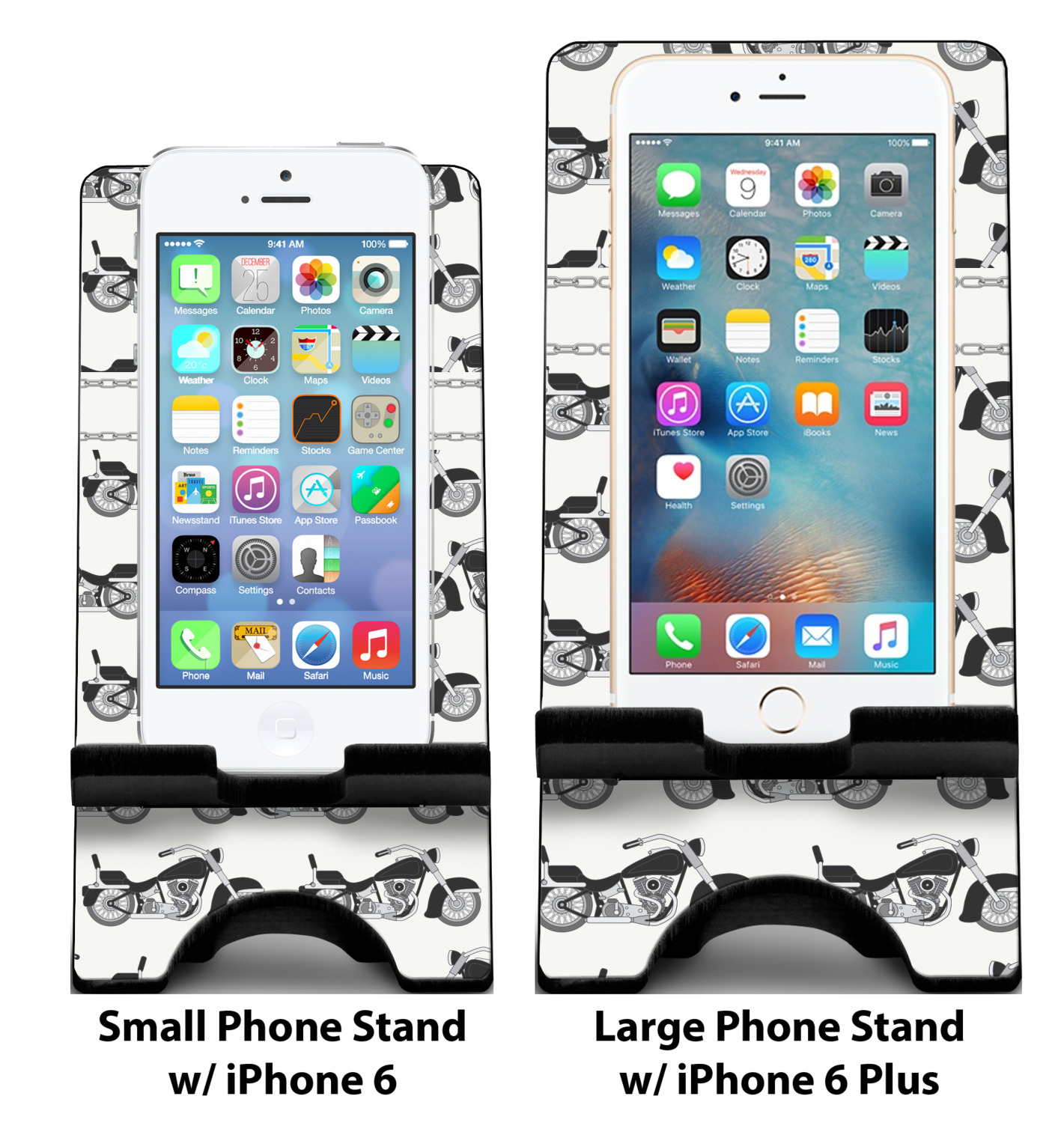To meet your needs, we offer four variations of this IPhone stand. The backboard of the first version is shaped as a plain, yet sleek rectangle, and is available in two sizes. Our smaller size is approximately 4 by 3.25 by 7 inches, while the larger model is 4 by 3.77 by 8.5 inches. Alongside this model, we also provide you with a more decorative option. The upper part of our second version features a curved edge, for a classy, suave appearance. This phone holder is also sold in two sizes: a smaller version, which is 4 by 3.25 by 7 inches, and our larger model, which is 4 by 3.77 by 8.5 inches. Both models will support large phones, but the larger model is better if you wish to proudly display your personalized design.