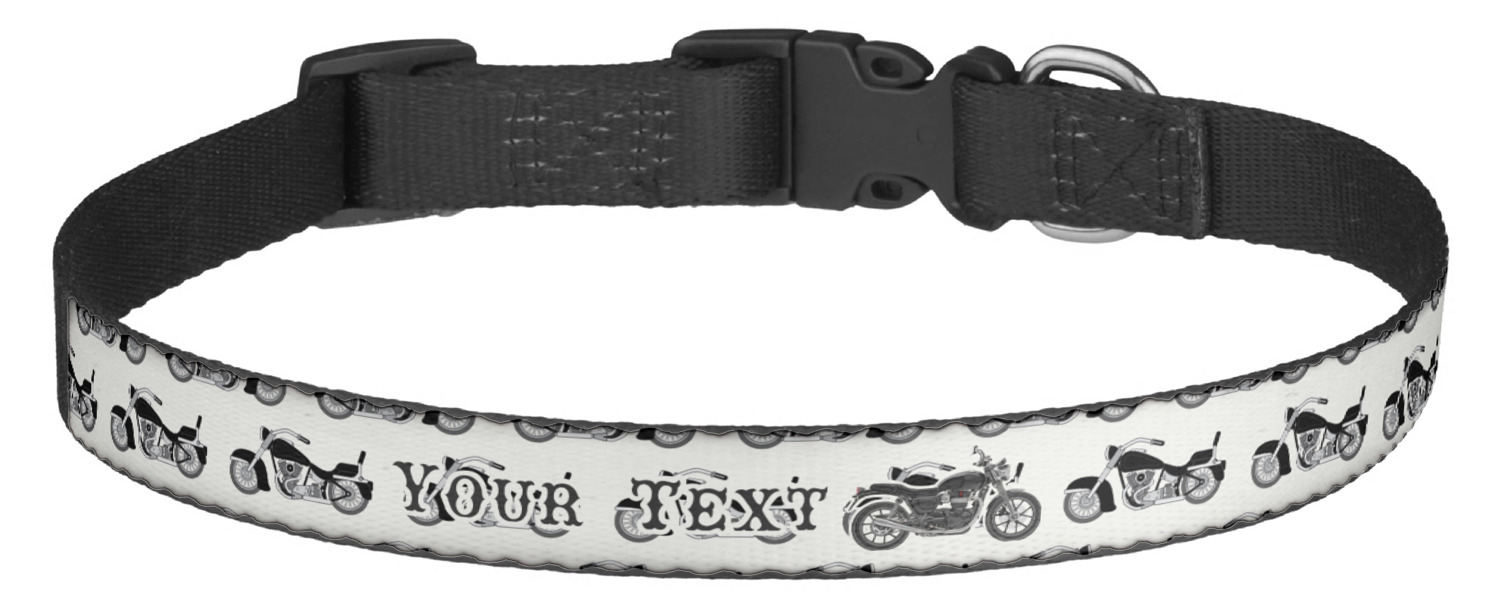 We offer these custom dog collars in two sizes: small and large. Our small dog collar, suitable for Pugs, Corgis, Beagles, and many others, is 10" to 16" long and 0.75" wide. Our large size fits Collies, Labradors, and Standard Poodles and other larger dogs (to name a few), and is 15" to 22" long, and 1" wide.