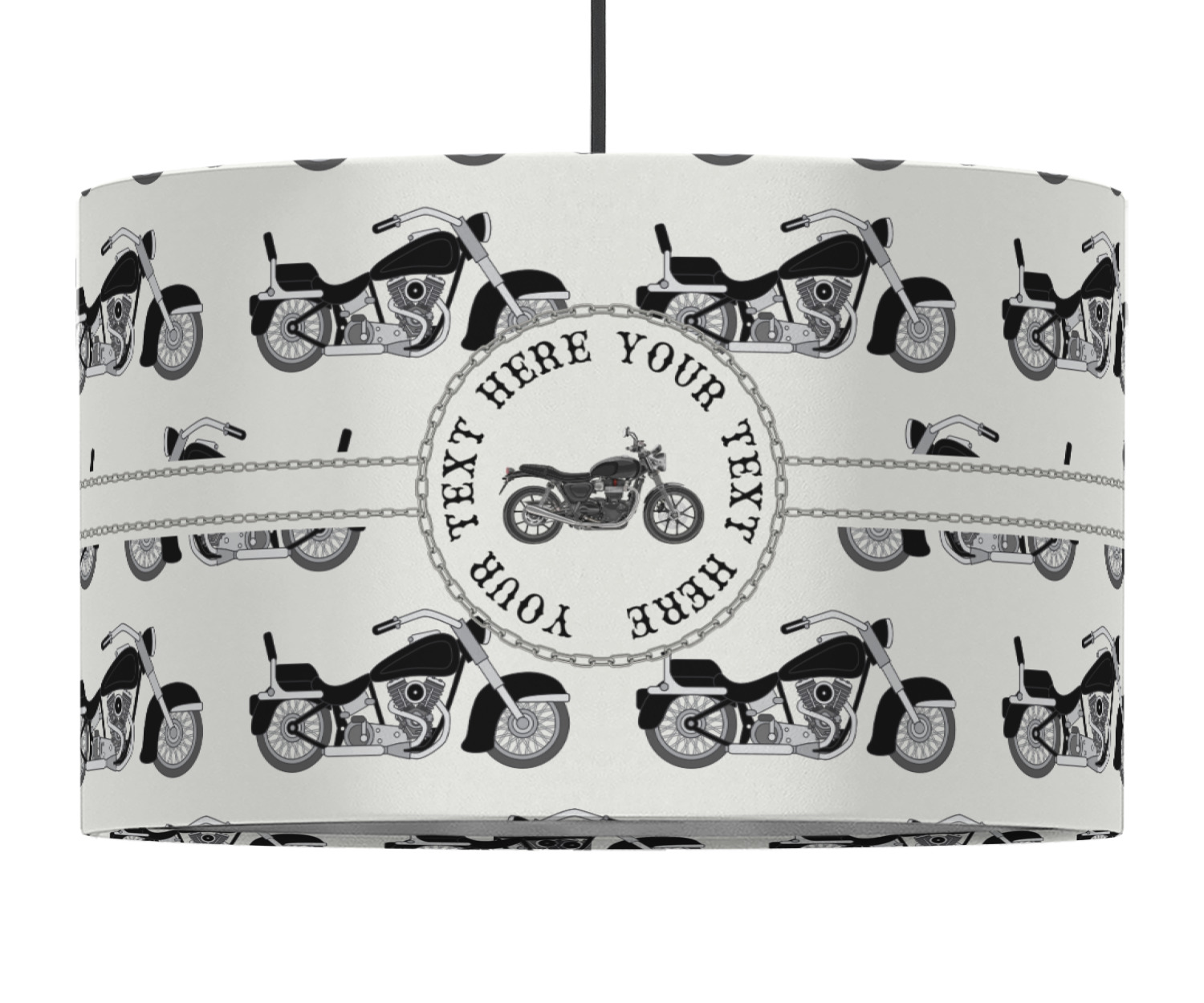These pendant lampshades are in a cylindrical, drum shape. Available in 2 sizes - 16 inch diameter and a height of 10 inches or 12 inch diameter with a height of 8 inches, this lantern pendant light will not go unnoticed in your home. The interior of this light shade is made of flexible, smooth plastic, and the base color of the lamp is white. Your personalization is displayed on the exterior of this custom lampshade. The fabric shades the fabric fully wraps the ring for a sleek look. Your purchase includes a 12 foot long cord that has a convenient on and off switch attached, the cord is black in color with a tasteful cloth covering over the cord to add the sophisticated look to this light fixture. This lamp can fit a 60 or 75 watt light bulb, but the bulb is not included. Please scroll through the images above to learn more about the structure and shaping of this lamp compared to the other ones we offer.