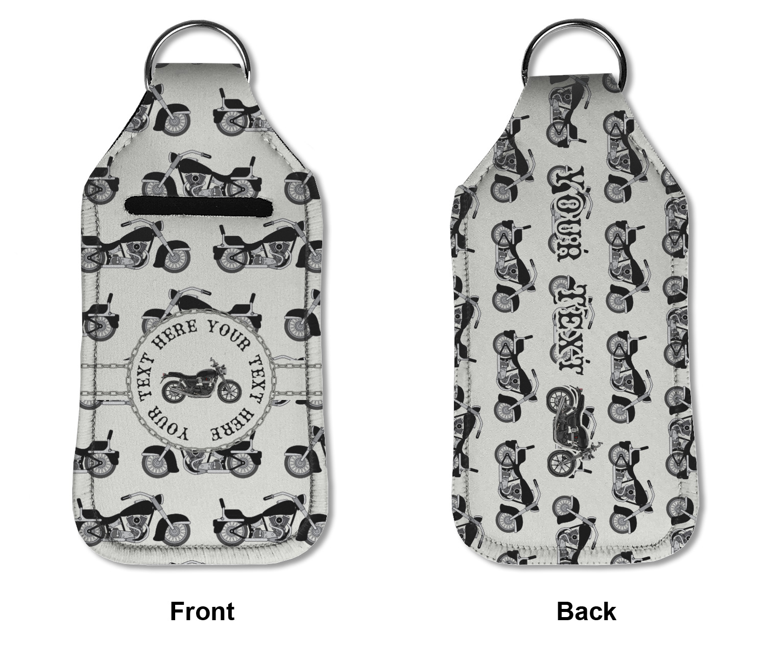 Each hand sanitizer holder comes with its own empty travel-sized, refillable hand sanitizer sure to fit snug in your customized sanitizer case! Our hand sanitizer cases are a durable, yet soft neoprene material sure to last any daily activities or travel agenda. Customize and personalize a hand sanitizer bottle holder with one of our two sizes - small (4.25" x 2.25") or large (5.5" x 2.5"). Each travel sanitizer holder comes with a keyring for attachment on bags, keys, or more!