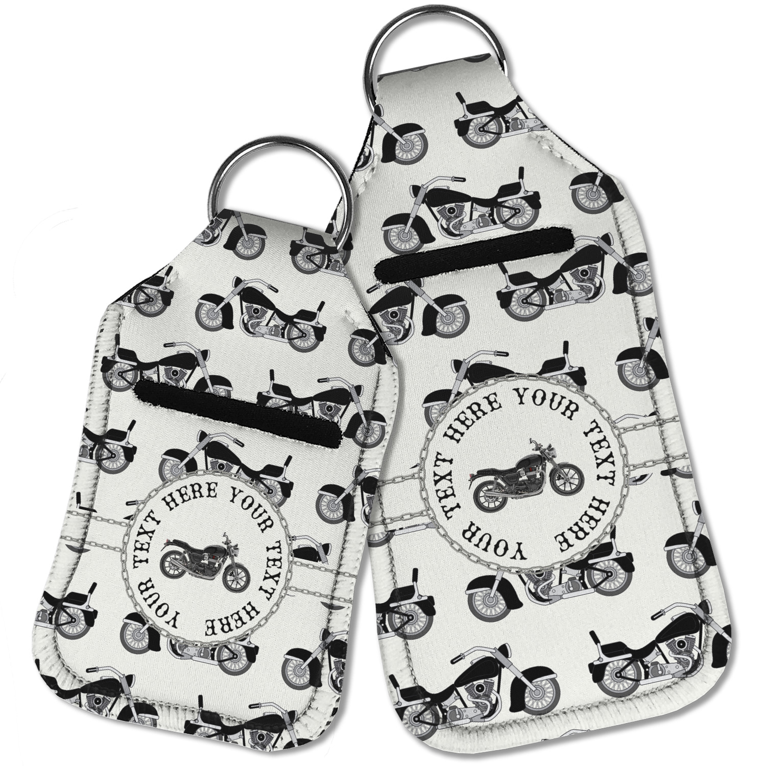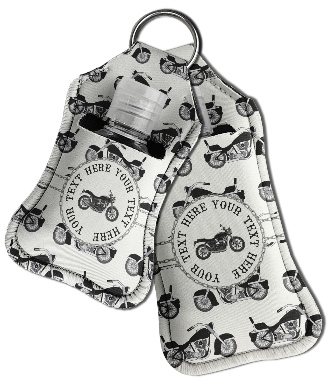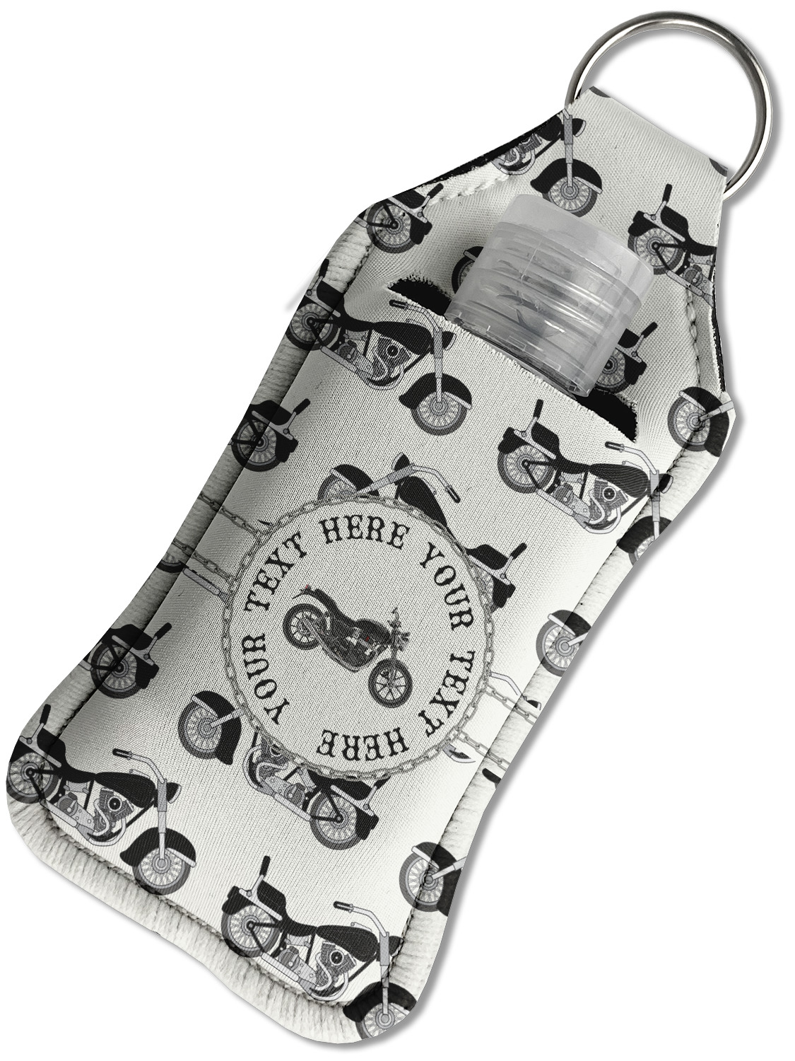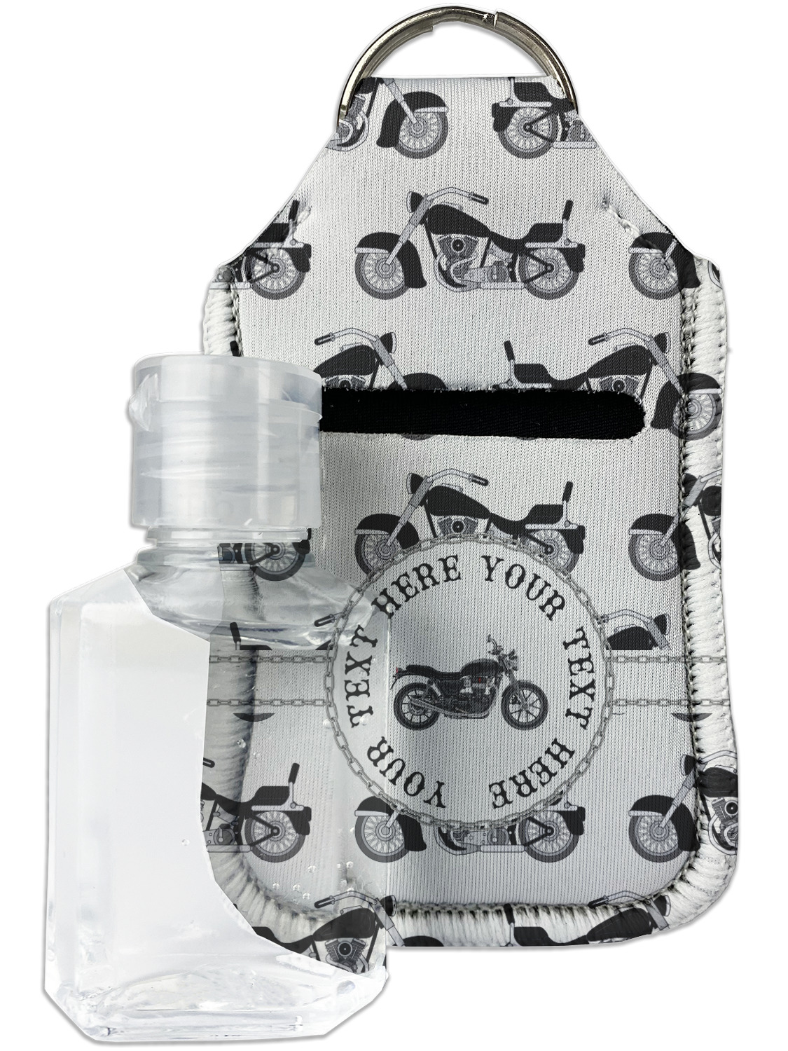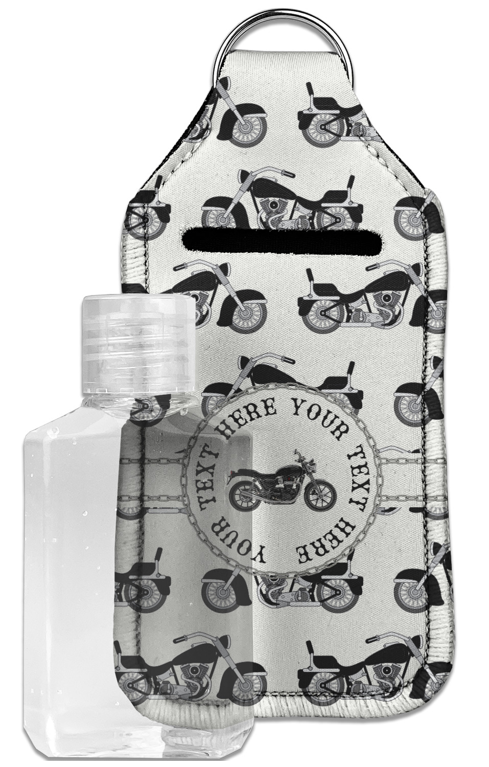 Each hand sanitizer holder comes with its own empty travel-sized, refillable hand sanitizer sure to fit snug in your customized sanitizer case! Our hand sanitizer cases are a durable, yet soft neoprene material sure to last any daily activities or travel agenda. Customize and personalize a hand sanitizer bottle holder with one of our two sizes - small (4.25" x 2.25") or large (5.5" x 2.5"). Each travel sanitizer holder comes with a keyring for attachment on bags, keys, or more!
