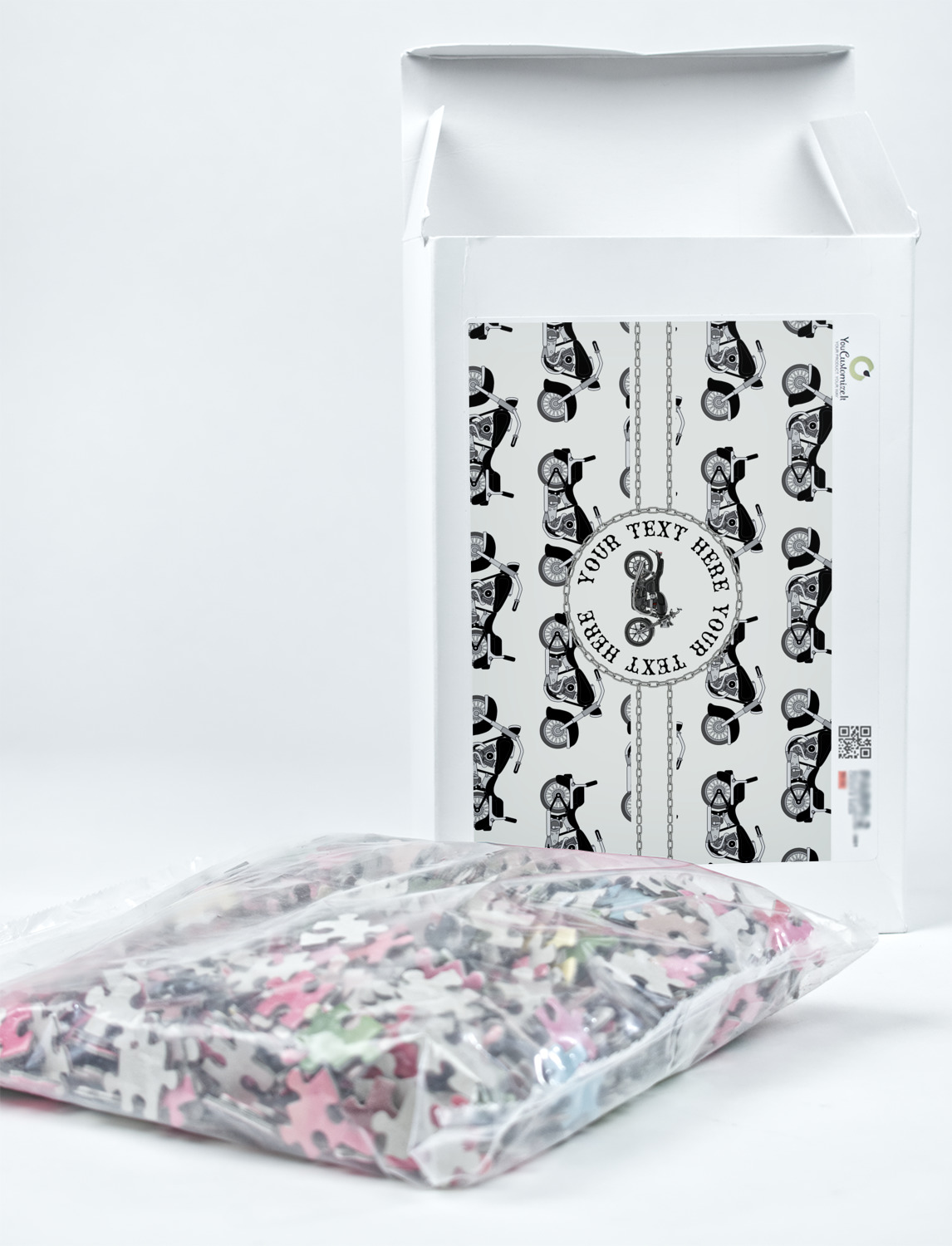 You can also upload your logo or art that you or your kids drew. To create more challenging jigsaw puzzles, you can create a pattern from with your logo or artwork. You can also add other elements such as text or personalization.