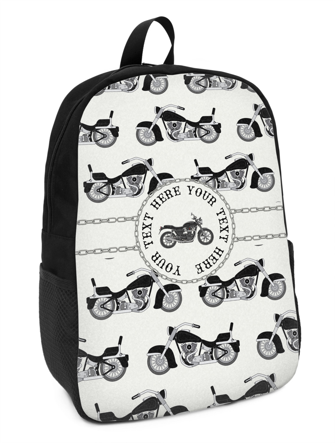 These small backpacks are made of a durable black canvas material with your personalization right on the front. The two shoulder straps are padded and easily adjustable. The bag itself measures at about 11" W x 15" H x 5" D. It's the perfect size for elementary aged kids or adults who want a smaller backpack. On the top of the bag you will find a handle to hang or carry your backpack by as well as a large zipper closure to keep all of your belongings safe inside. On each side of your backpack is a mesh pocket for a small item or water bottle. Inside your backpack you will find a spacious area with a small zipper pocket and a padded laptop slot that will fit up to a 13" laptop (13" being very snug). This is the perfect bag for any student that needs a couple books and their laptop with them at all times. It also works great as a carry on for traveling!