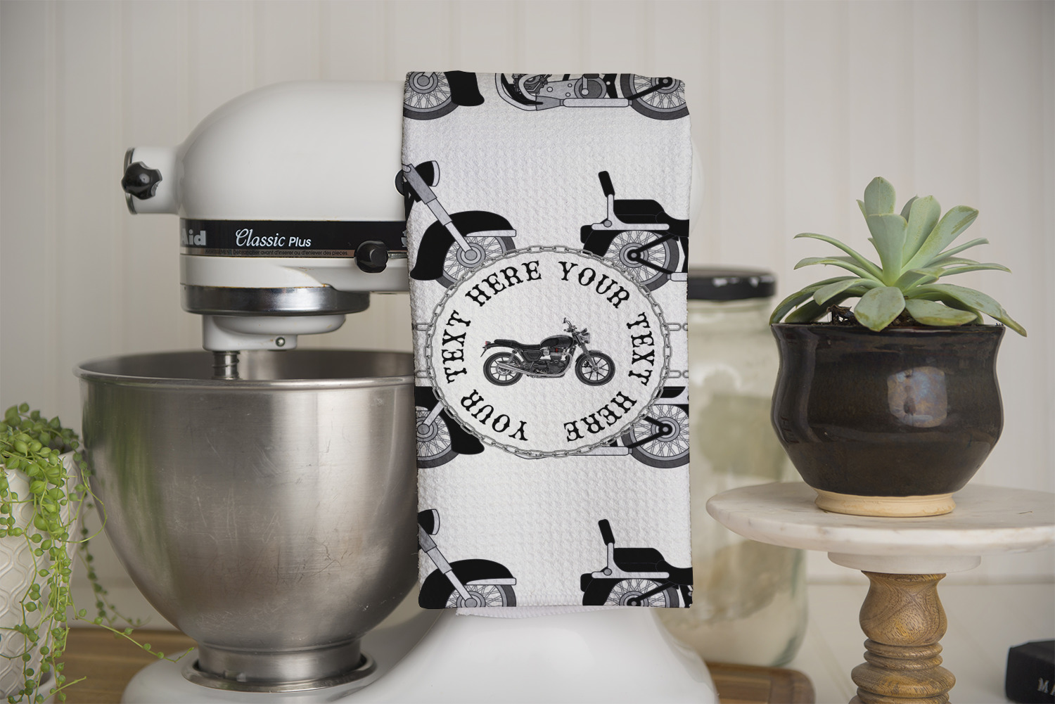 Each waffle weave kitchen towel is approximately 16 x 24 inches with your design printed on one side and the back is white.