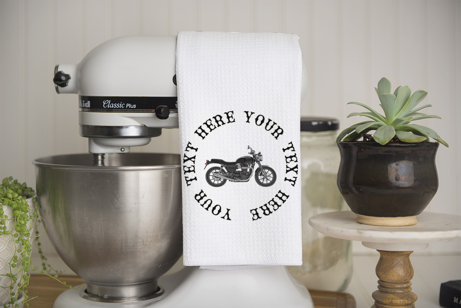 Each waffle weave kitchen towel is approximately 16 x 24 inches with your design printed on one side and the back is white.
