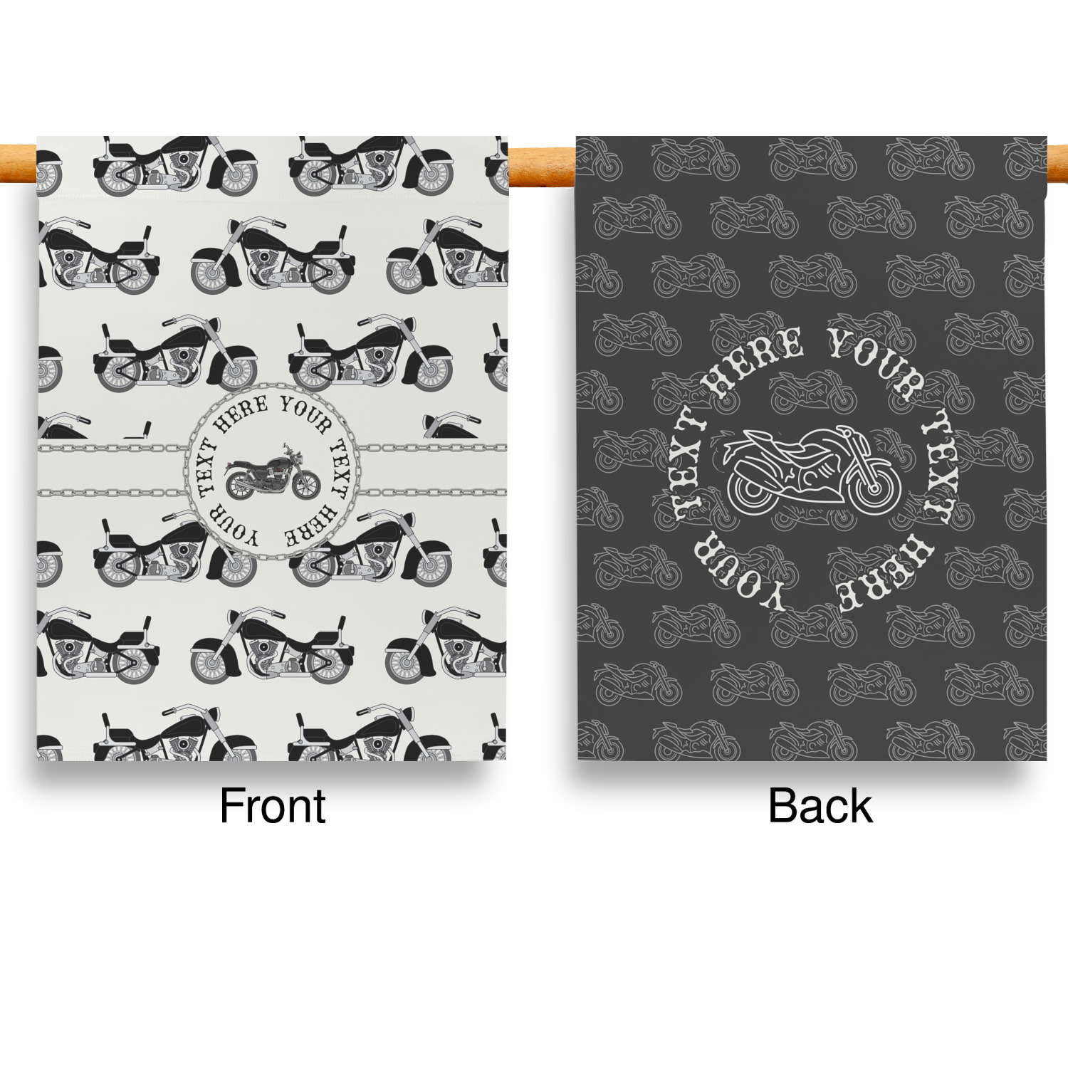 These custom garden flags are made of a durable, double-ply, polyester weave, allowing them to withstand the elements year round. The small flags measure at approximately 12 by 18 inches. The large flags measure out to 28 by 37 inches. You can order these decorative flags with your customization printed on the front only, or the front and back.