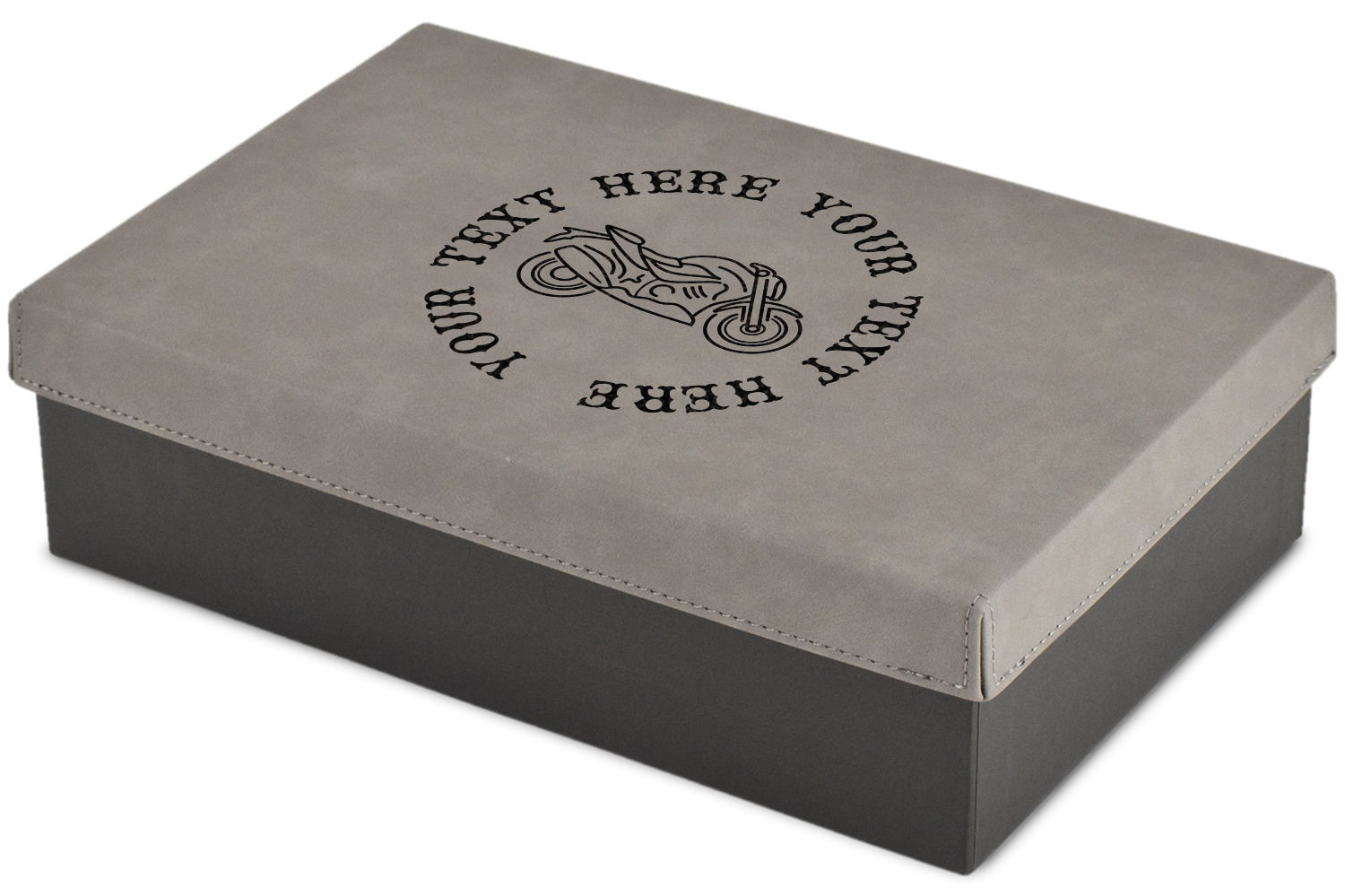 These gift boxes are available in 3 different sizes to accommodate various sized gifts. Available in gray as a neutral color for any occasion as well as to showcase your design boldly. Engraved with a laser this high quality paper board and faux leather gift box is unique and makes any gift stand out.