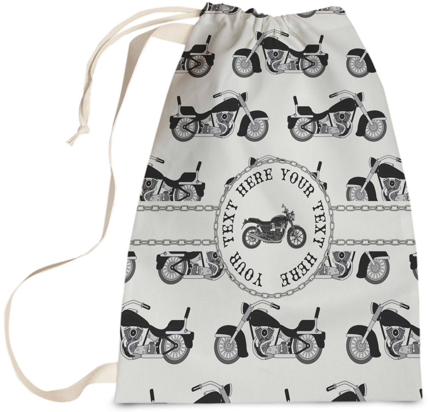 Carry your laundry in style with these customized laundry bags. Available in two sizes, featuring a natural colored woven strap and a cinch cord, these bags hold a lot of clothes or anything else you want to fit in them.