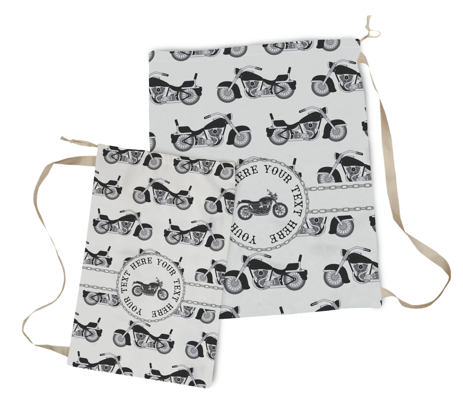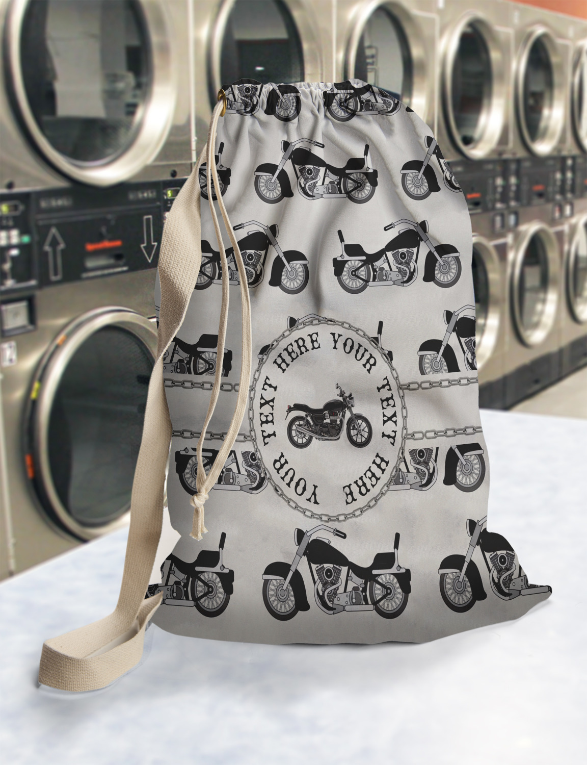 Carry your laundry in style with these customized laundry bags. Available in two sizes, featuring a natural colored woven strap and a cinch cord, these bags hold a lot of clothes or anything else you want to fit in them.