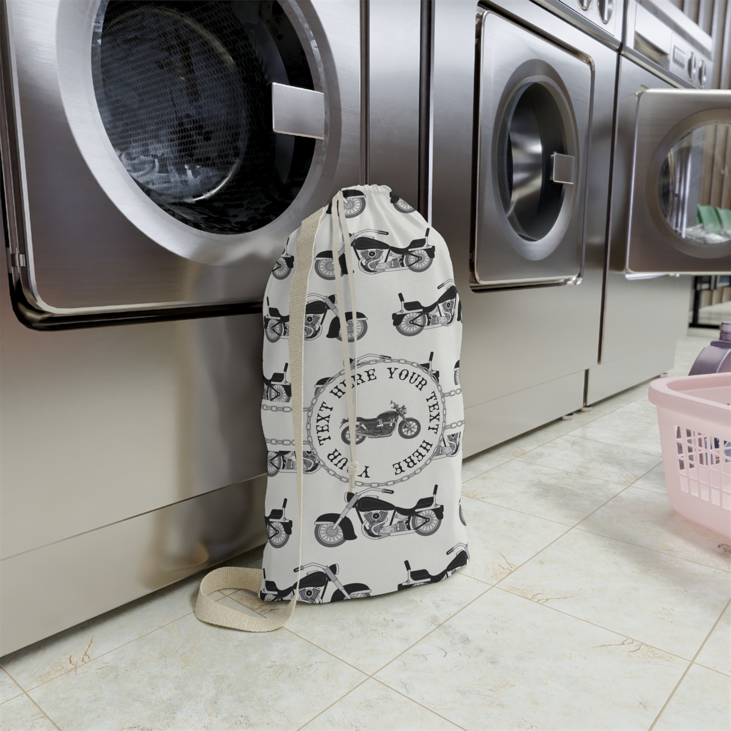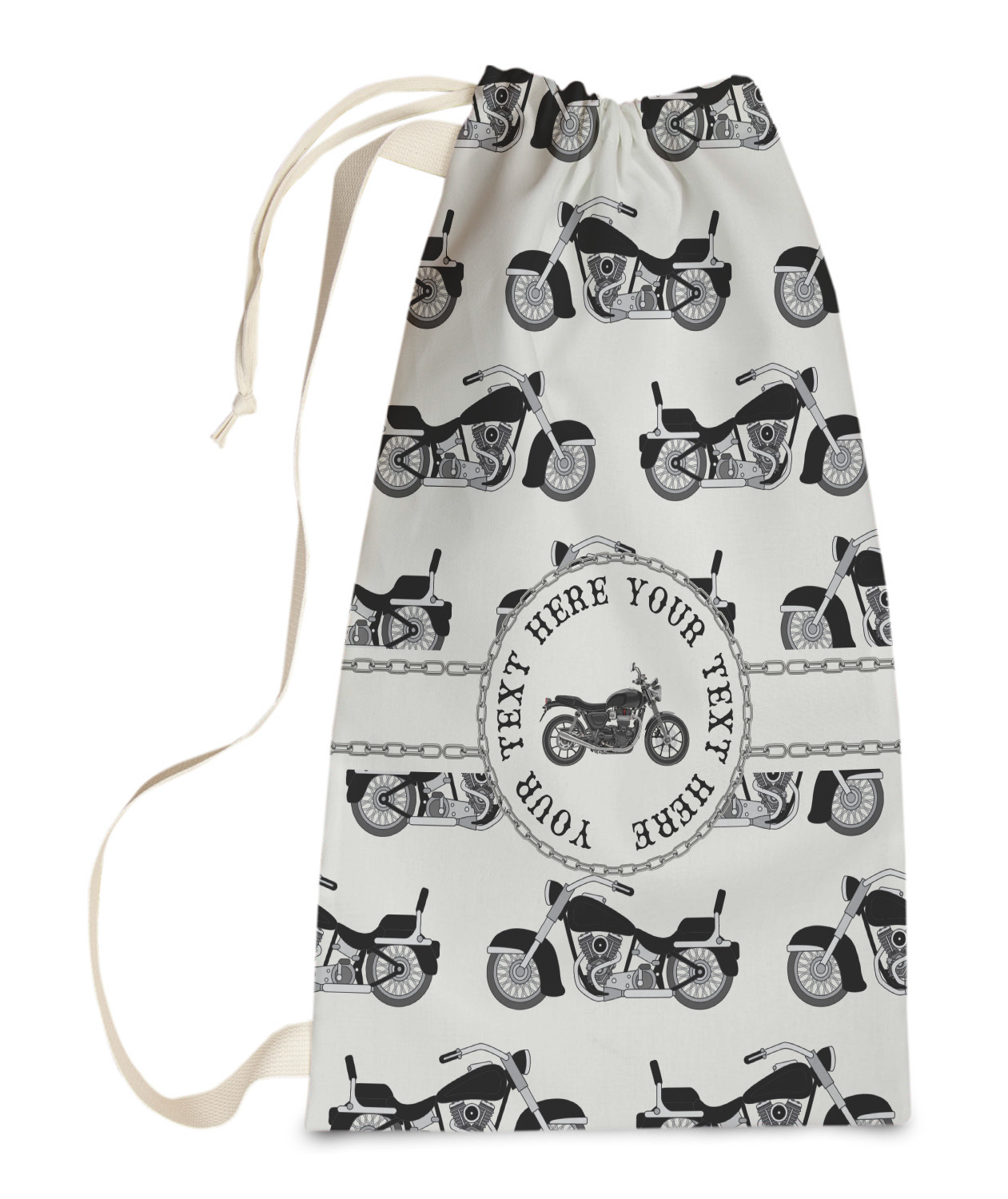 Carry your laundry in style with these customized laundry bags. Available in two sizes, featuring a natural colored woven strap and a cinch cord, these bags hold a lot of clothes or anything else you want to fit in them.