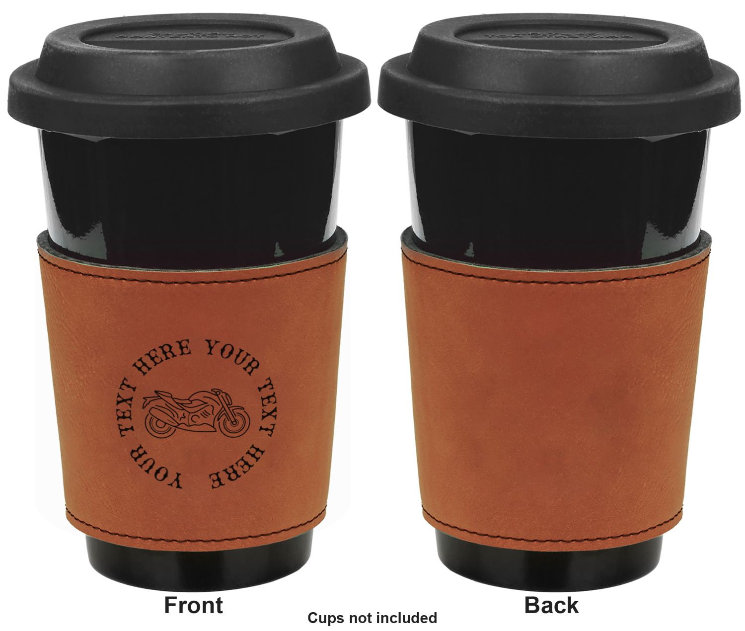 This cup sleeve is made from a suave, cognac-brown leatherette and finished with an intricate, black stitch. The interior of this can sleeve is fabricated from a thin foam material to help insulate your mug's contents. The sleeve is specifically made to suit tapered glasses or mugs, so the top's diameter is 3.5 inches, while the bottom's diameter is 2.75 inches. Your customized design will be laser engraved into the leatherette, leaving behind crisp, black imprint. With these products, we provide you with the option of engraving the front and back, or the front only.