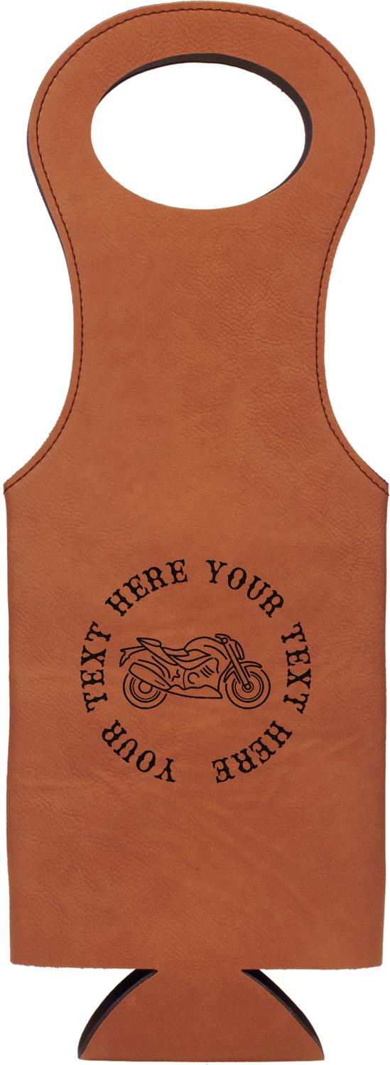 This wine carrier is made from a stunning leatherette, in a cognac-brown color. Strong, black stitching lines the sides of your wine bottle bag and provides extra durability. The interior is lined with a padded, black material to allow for a snug fit once your bottle is placed inside. At the top of this wine gift bag, you'll find two oval shaped handles that elegantly complements the rest of the bag's style. We provide you with the option of laser-engraving the front, or the front and back of your new personalized wine bag!