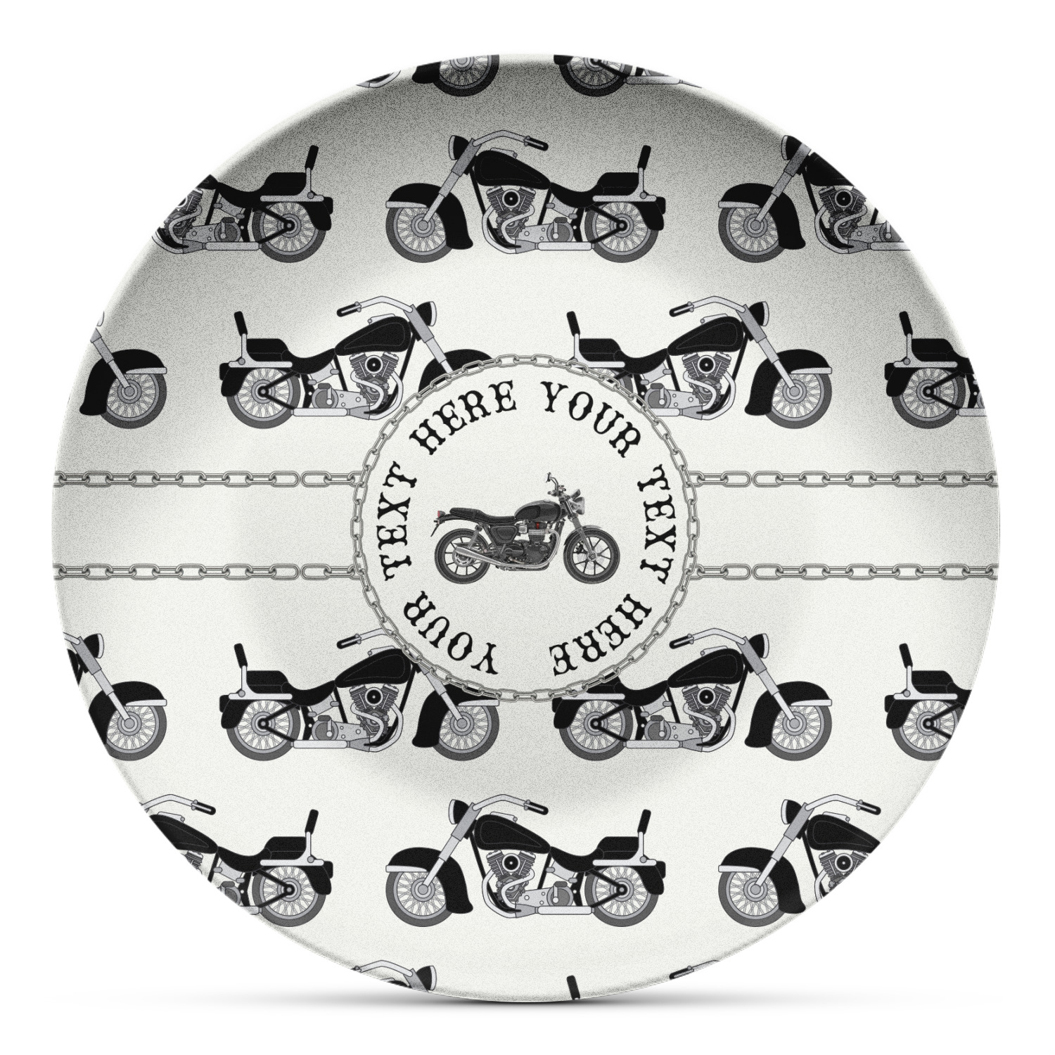 These plastic plates have the versatility, durability, and weight of melamine plates but are instead are made from a melamine-free composite, thermo-set, polymer plastic. These plates are made right here, in the USA, without the use of harmful chemicals, such as BPAs, formaldehyde, or DEHPs. Our elegant plastic plates can even withstand temperatures of up to 250 degrees Fahrenheit, for up to 60 minutes. The entire face of the plate exhibits your personalization in bright, vibrant color, and the plate's diameter measures at 10" long.
