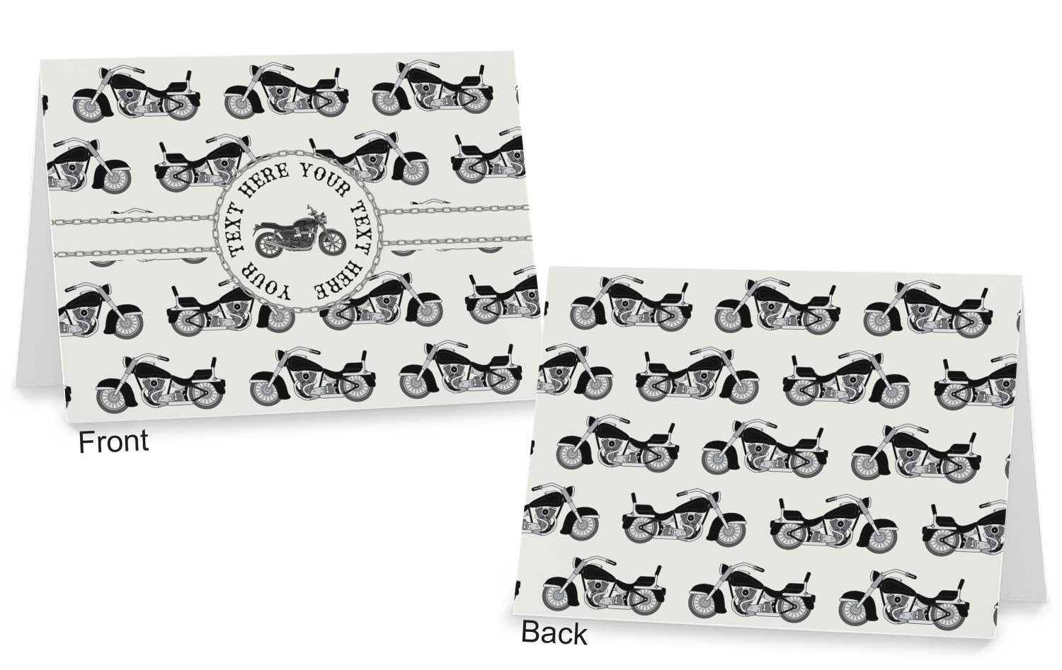 Our custom folded note cards are printed on premium 100lb. card stock and comes with white envelopes. The note card measure 5.5 by 4.25 inches and are blank on the inside for your handwritten message.